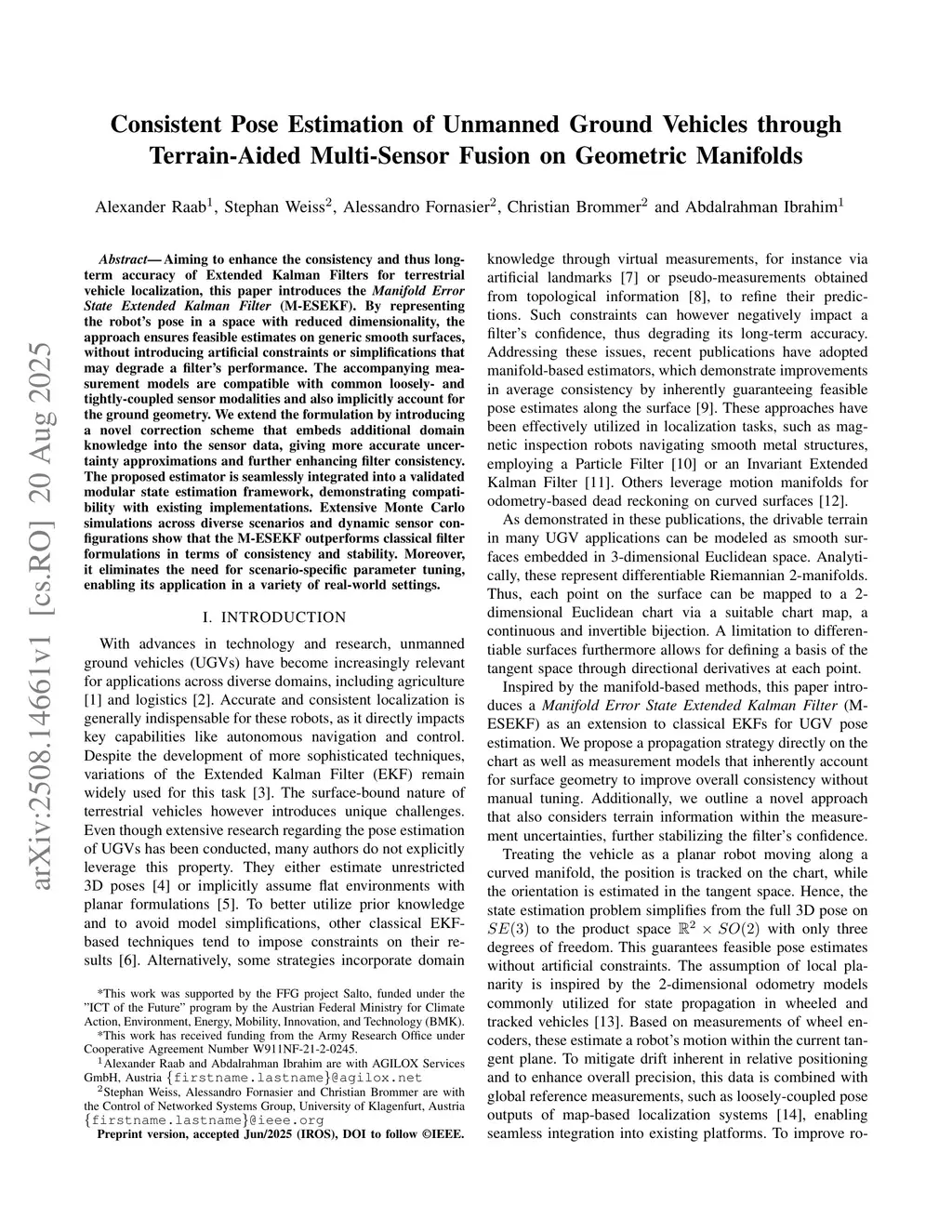 Consistent Pose Estimation of Unmanned Ground Vehicles through Terrain-Aided Multi-Sensor Fusion on Geometric Manifolds