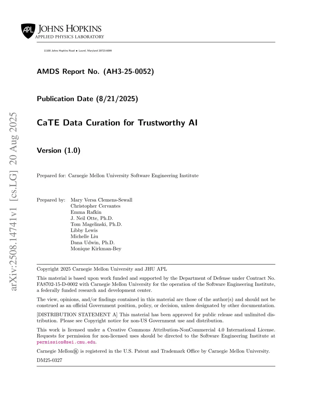 CaTE Data Curation for Trustworthy AI