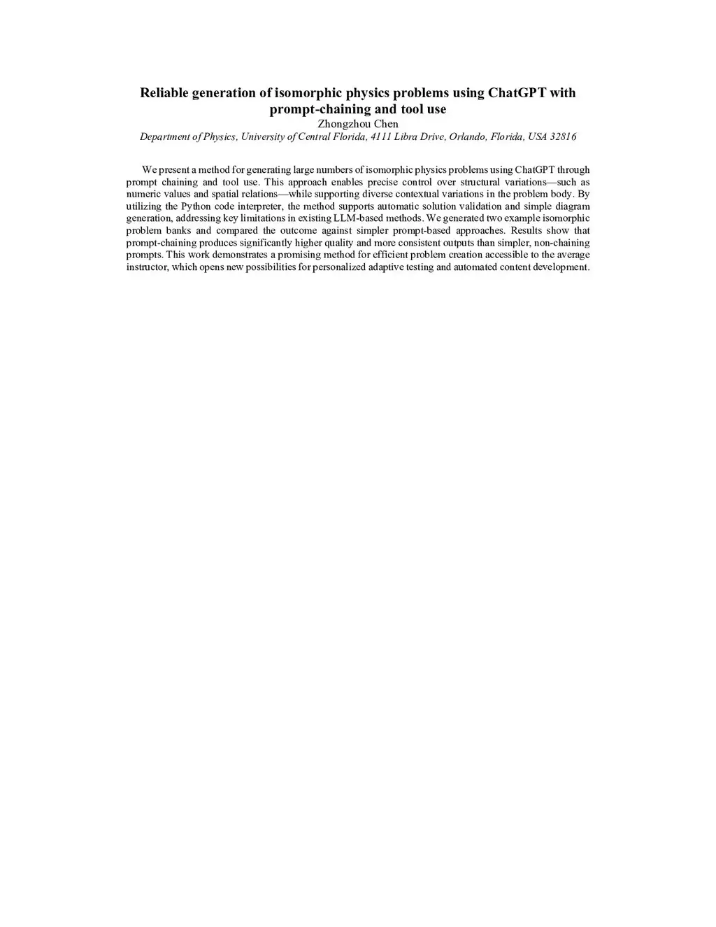 We present a method for generating large numbers of isomorphic physics problems using generative AI services such as ChatGPT, through prompt chaining and tool use. This approach enables precise control over structural variations-such as numeric values and spatial relations-while supporting diverse contextual variations in the problem body. By utilizing the Python code interpreter, the method supports automatic solution validation and simple diagram generation, addressing key limitations in existing LLM-based methods. We generated two example isomorphic problem banks and compared the outcome against two simpler prompt-based approaches. Results show that prompt-chaining produces significantly higher quality and more consistent outputs than simpler, non-chaining prompts. We also show that GenAI services can be used to validate the quality of the generated isomorphic problems. This work demonstrates a promising method for efficient and scalable problem creation accessible to the average instructor, which opens new possibilities for personalized adaptive testing and automated content development.