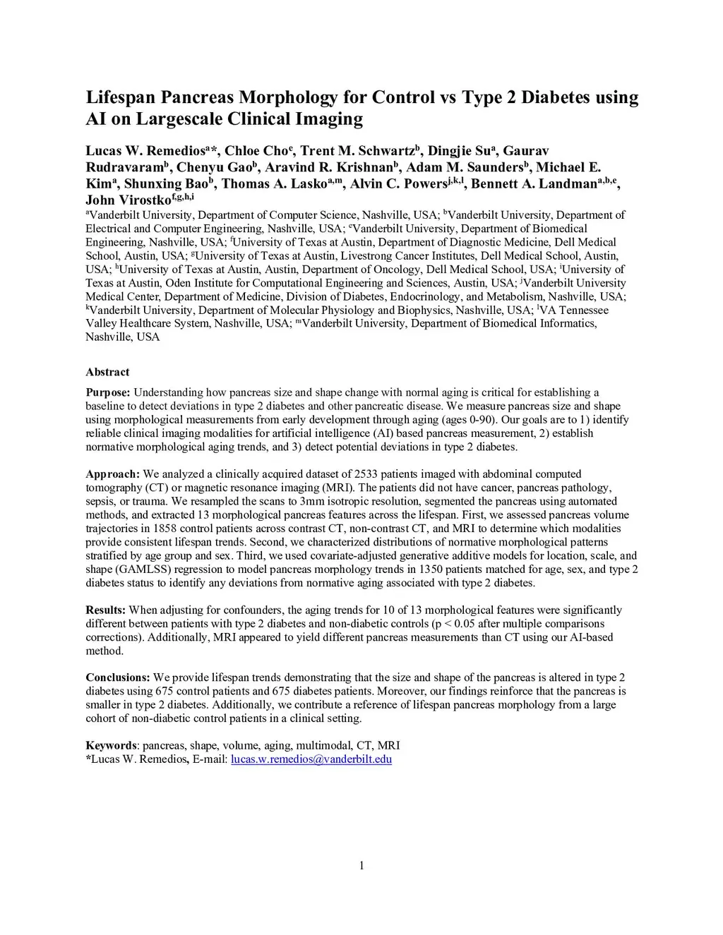 Lifespan Pancreas Morphology for Control vs Type 2 Diabetes using AI on Largescale Clinical Imaging