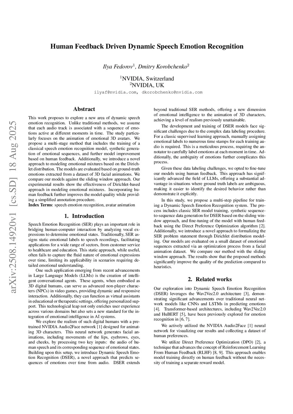 This work proposes to explore a new area of dynamic speech emotion recognition. Unlike traditional methods, we assume that each audio track is associated with a sequence of emotions active at different moments in time. The study particularly focuses on the animation of emotional 3D avatars. We propose a multi-stage method that includes the training of a classical speech emotion recognition model, synthetic generation of emotional sequences, and further model improvement based on human feedback. Additionally, we introduce a novel approach to modeling emotional mixtures based on the Dirichlet distribution. The models are evaluated based on ground-truth emotions extracted from a dataset of 3D facial animations. We compare our models against the sliding window approach. Our experimental results show the effectiveness of Dirichlet-based approach in modeling emotional mixtures. Incorporating human feedback further improves the model quality while providing a simplified annotation procedure.