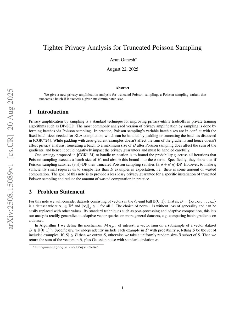We give a new privacy amplification analysis for truncated Poisson sampling, a Poisson sampling variant that truncates a batch if it exceeds a given maximum batch size.