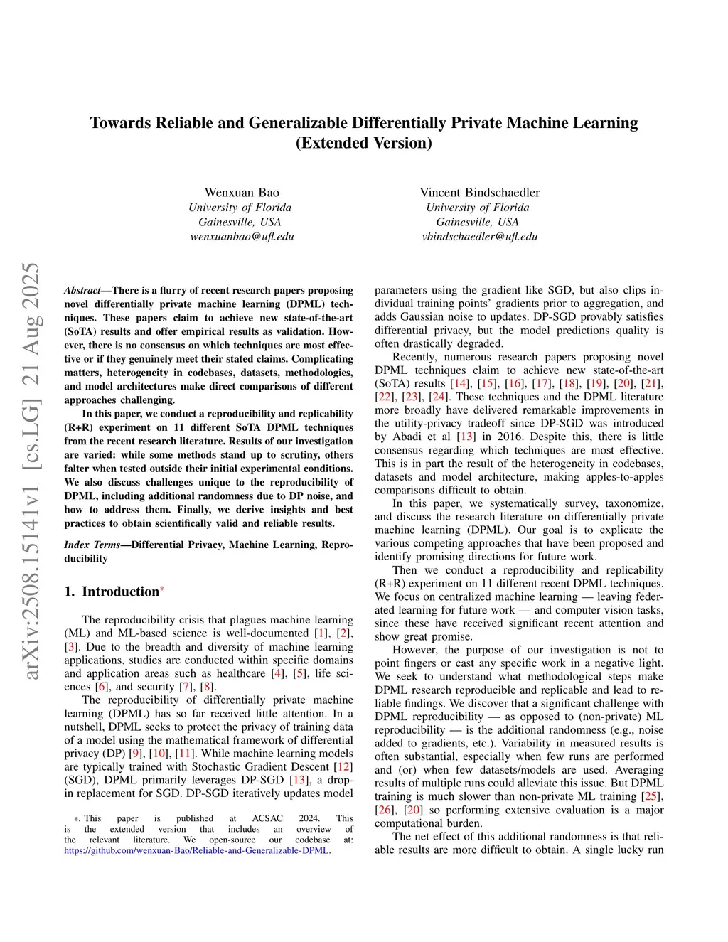 There is a flurry of recent research papers proposing novel differentially private machine learning (DPML) techniques. These papers claim to achieve new state-of-the-art (SoTA) results and offer empirical results as validation. However, there is no consensus on which techniques are most effective or if they genuinely meet their stated claims. Complicating matters, heterogeneity in codebases, datasets, methodologies, and model architectures make direct comparisons of different approaches challenging.In this paper, we conduct a reproducibility and replicability (R+R) experiment on 11 different SoTA DPML techniques from the recent research literature. Results of our investigation are varied: while some methods stand up to scrutiny, others falter when tested outside their initial experimental conditions. We also discuss challenges unique to the reproducibility of DPML, including additional randomness due to DP noise, and how to address them. Finally, we derive insights and best practices to obtain scientifically valid and reliable results.