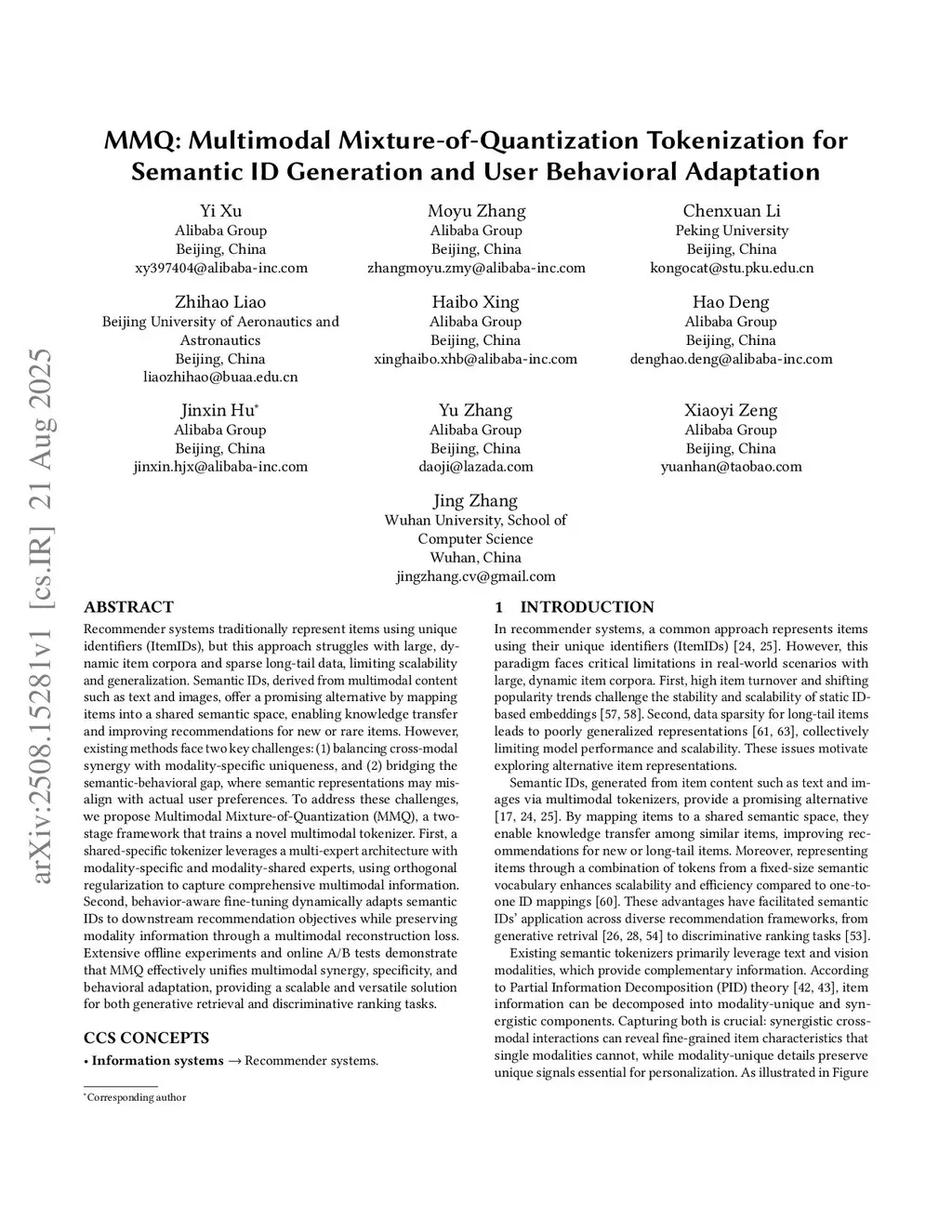 MMQ: Multimodal Mixture-of-Quantization Tokenization for Semantic ID Generation and User Behavioral Adaptation