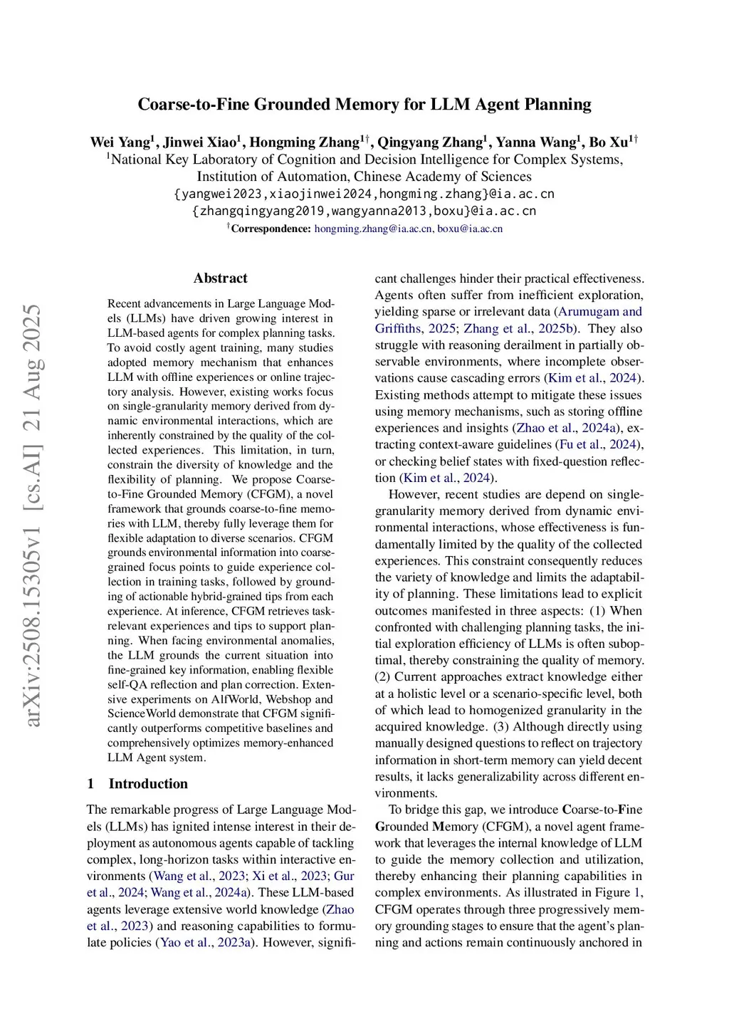 Coarse-to-Fine Grounded Memory for LLM Agent Planning