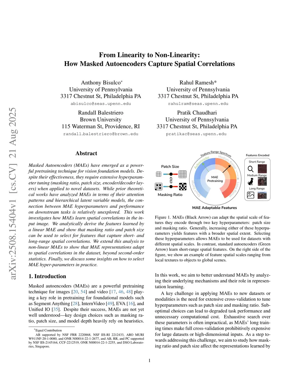 From Linearity to Non-Linearity: How Masked Autoencoders Capture Spatial Correlations