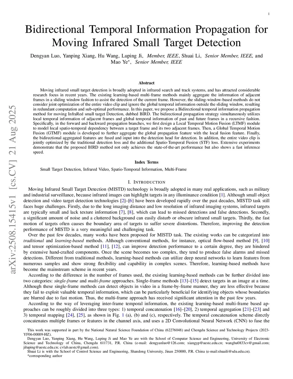 Bidirectional Temporal Information Propagation for Moving Infrared Small Target Detection