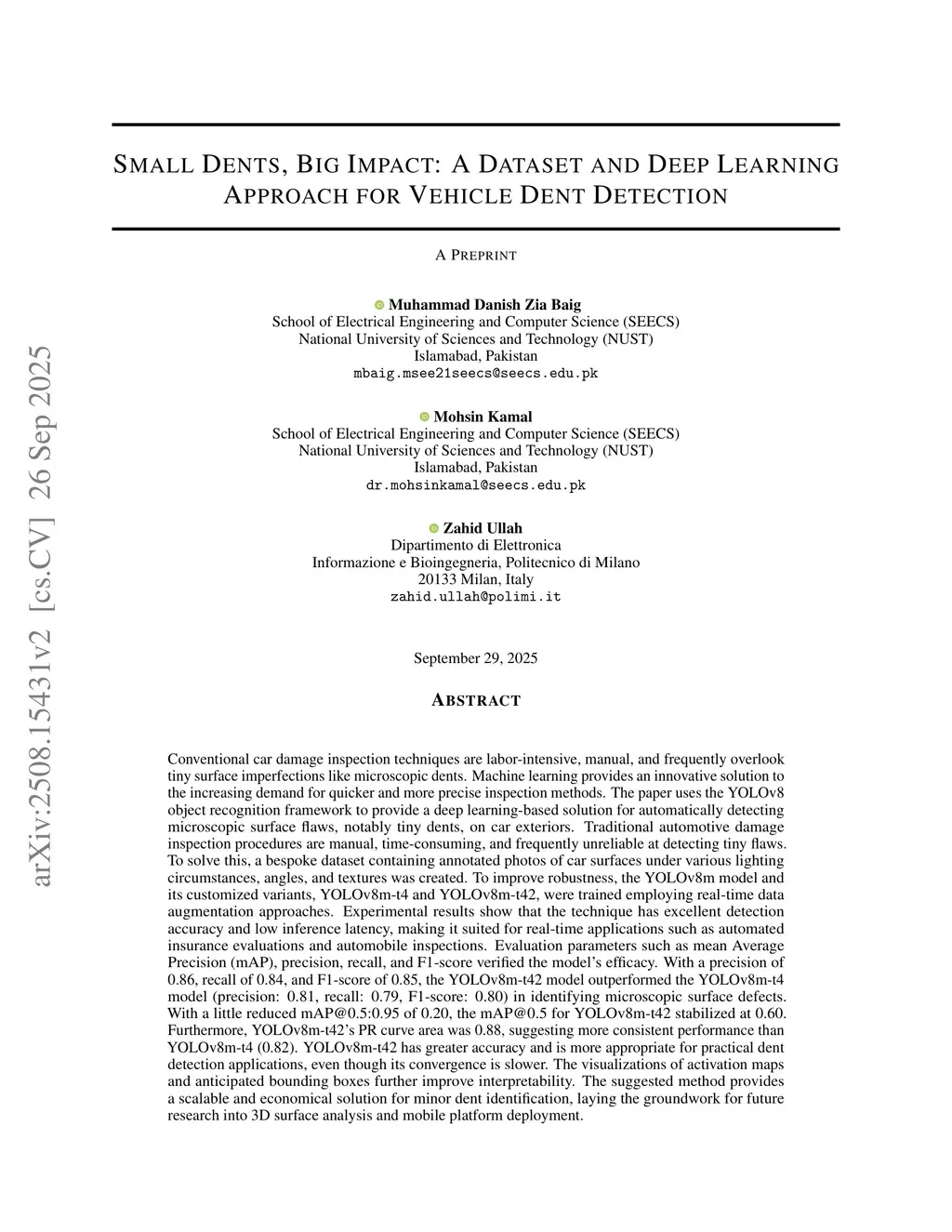 Small Dents, Big Impact: A Dataset and Deep Learning Approach for Vehicle Dent Detection