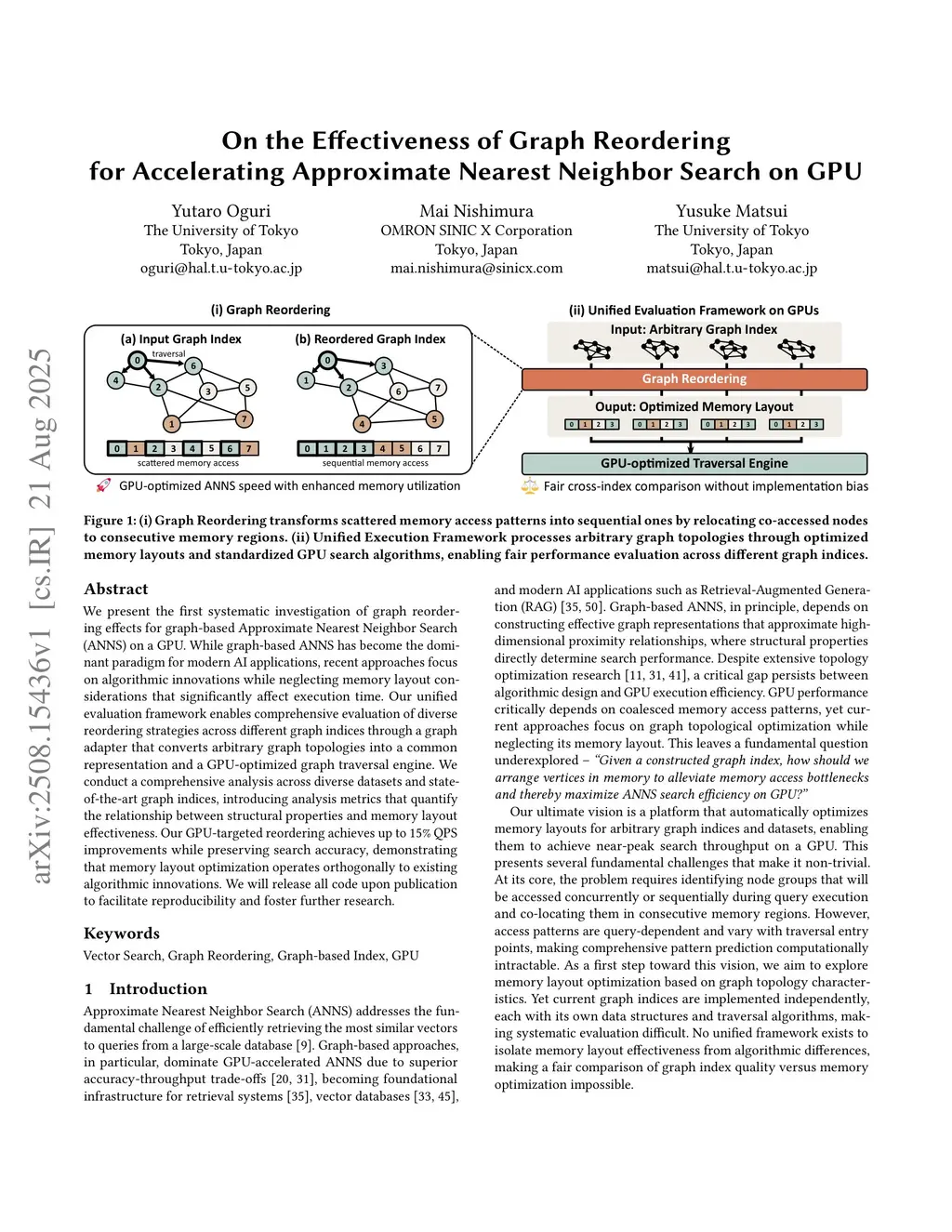 We present the first systematic investigation of graph reordering effects for graph-based Approximate Nearest Neighbor Search (ANNS) on a GPU. While graph-based ANNS has become the dominant paradigm for modern AI applications, recent approaches focus on algorithmic innovations while neglecting memory layout considerations that significantly affect execution time. Our unified evaluation framework enables comprehensive evaluation of diverse reordering strategies across different graph indices through a graph adapter that converts arbitrary graph topologies into a common representation and a GPU-optimized graph traversal engine. We conduct a comprehensive analysis across diverse datasets and state-of-the-art graph indices, introducing analysis metrics that quantify the relationship between structural properties and memory layout effectiveness. Our GPU-targeted reordering achieves up to 15 QPS improvements while preserving search accuracy, demonstrating that memory layout optimization operates orthogonally to existing algorithmic innovations. We will release all code upon publication to facilitate reproducibility and foster further research.