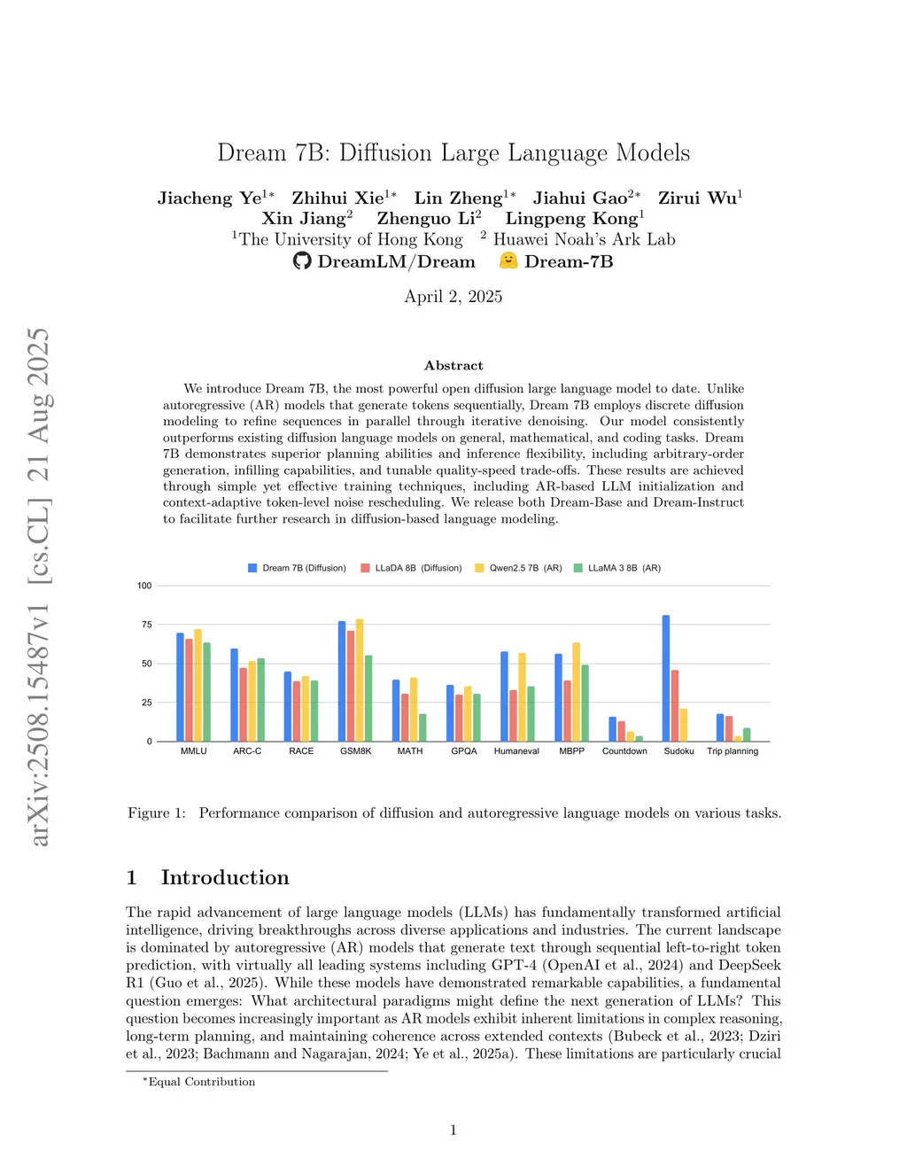 Dream 7B: Diffusion Large Language Models