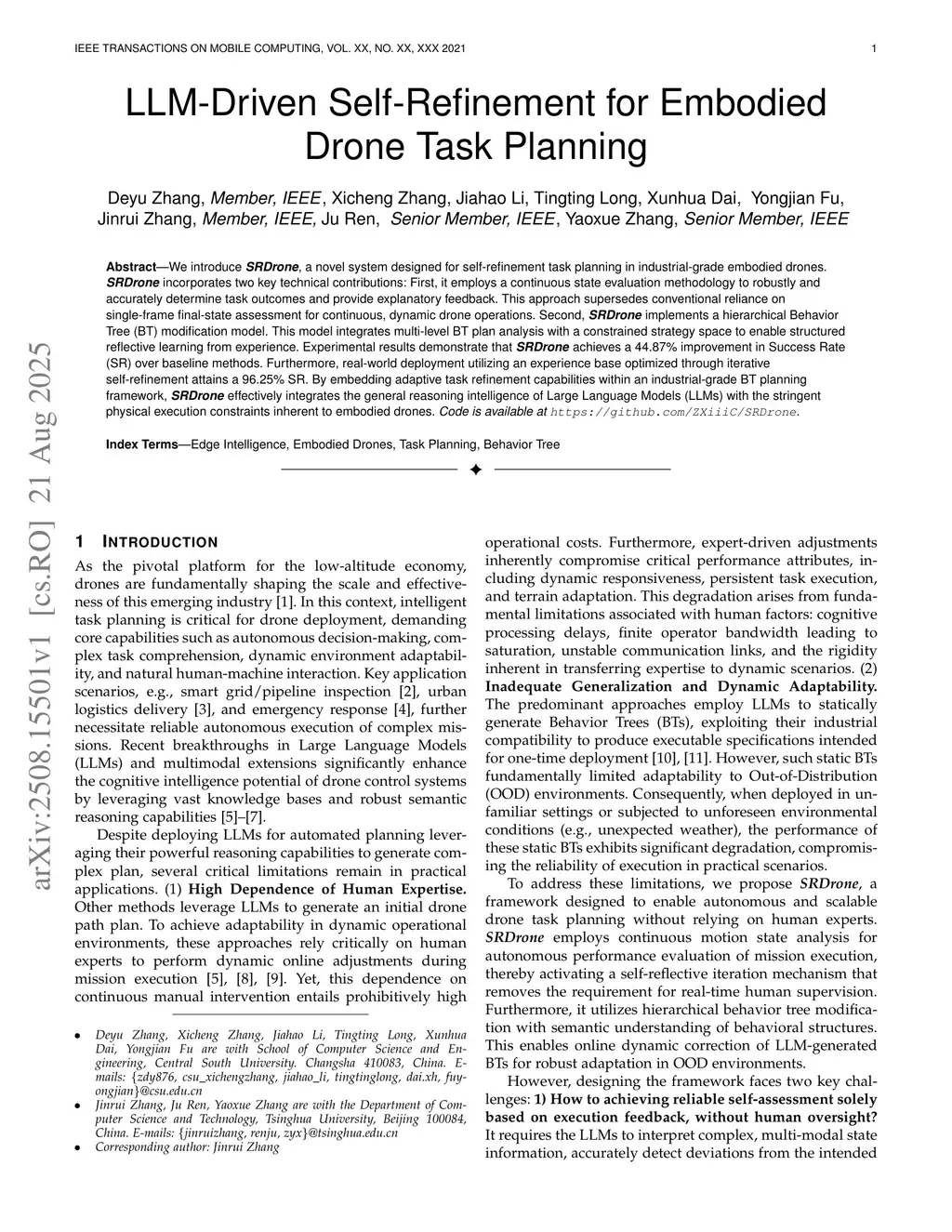 LLM-Driven Self-Refinement for Embodied Drone Task Planning