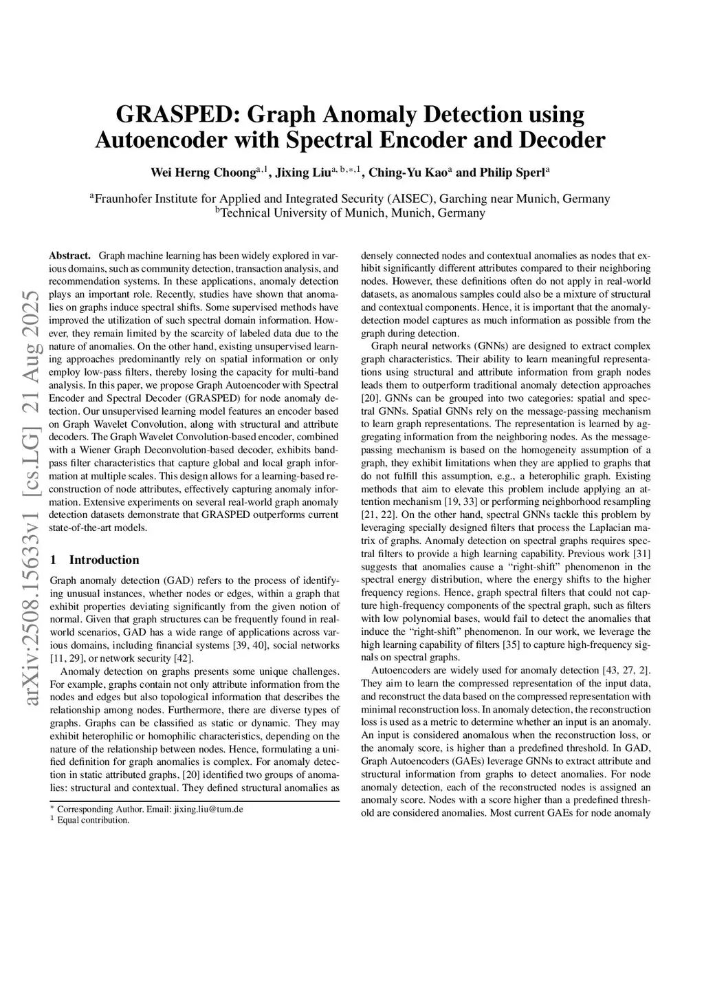 GRASPED: Graph Anomaly Detection using Autoencoder with Spectral Encoder and Decoder (Full Version)