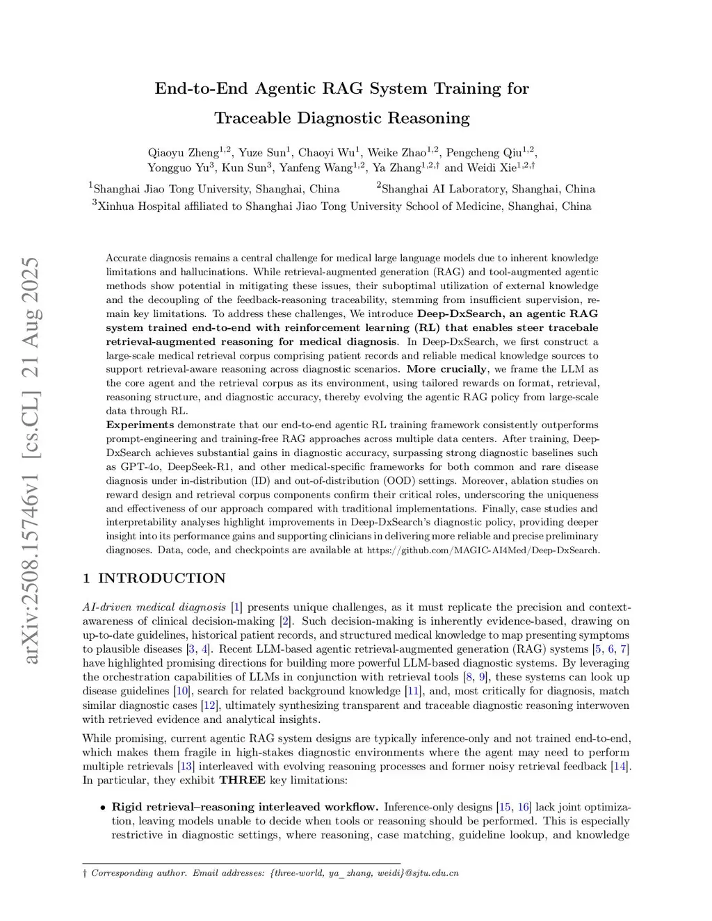 End-to-End Agentic RAG System Training for Traceable Diagnostic Reasoning