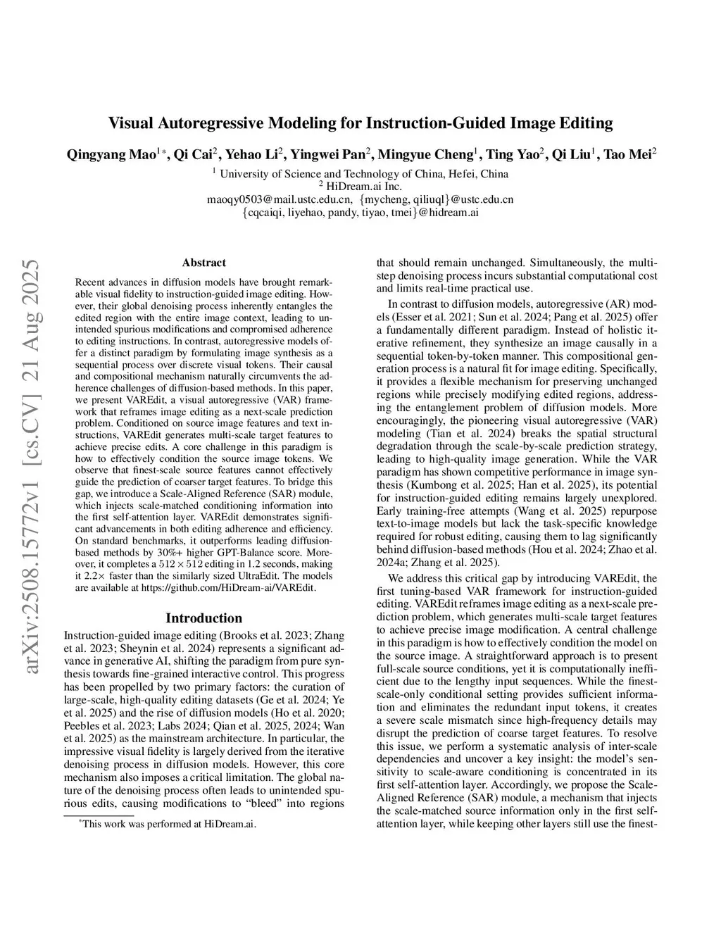 Visual Autoregressive Modeling for Instruction-Guided Image Editing