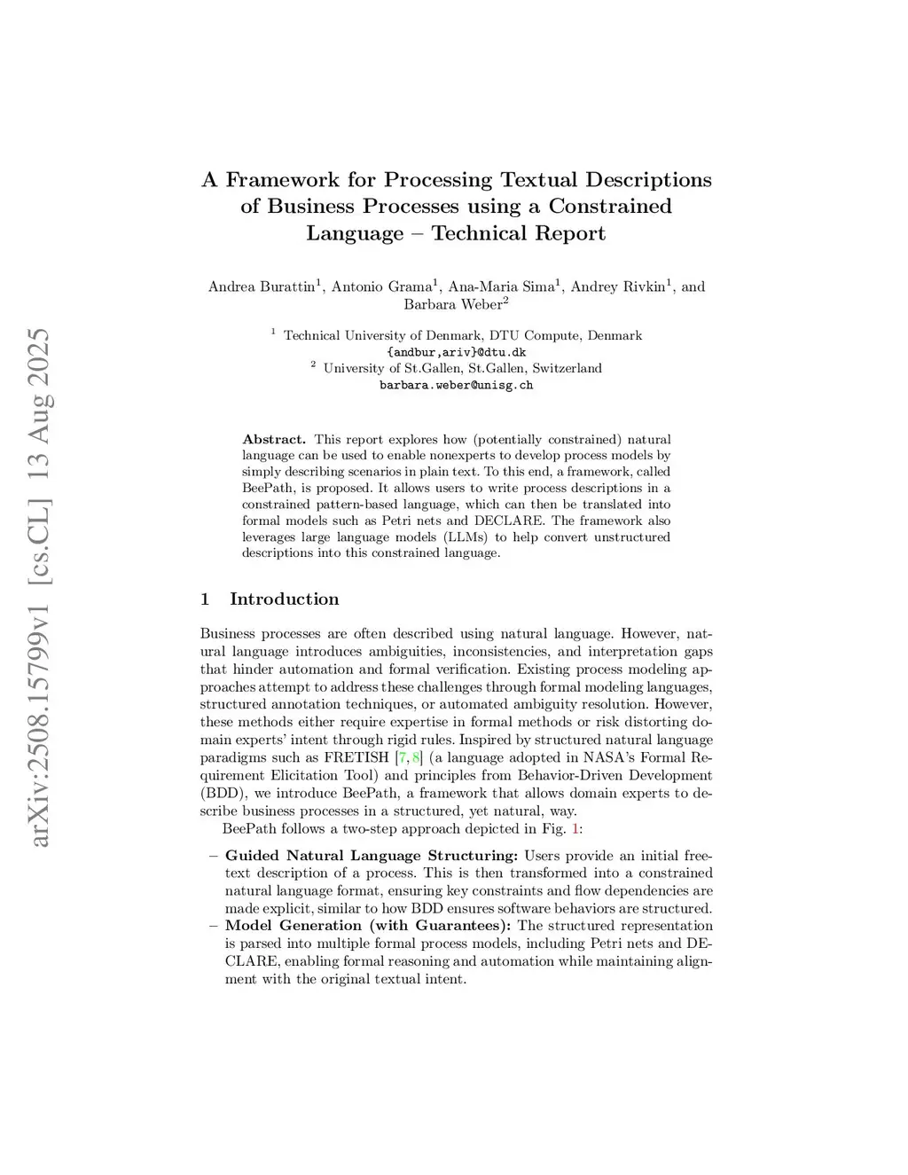 This report explores how (potentially constrained) natural language can be used to enable non-experts to develop process models by simply describing scenarios in plain text. To this end, a framework, called BeePath, is proposed. It allows users to write process descriptions in a constrained pattern-based language, which can then be translated into formal models such as Petri nets and DECLARE. The framework also leverages large language models (LLMs) to help convert unstructured descriptions into this constrained language.