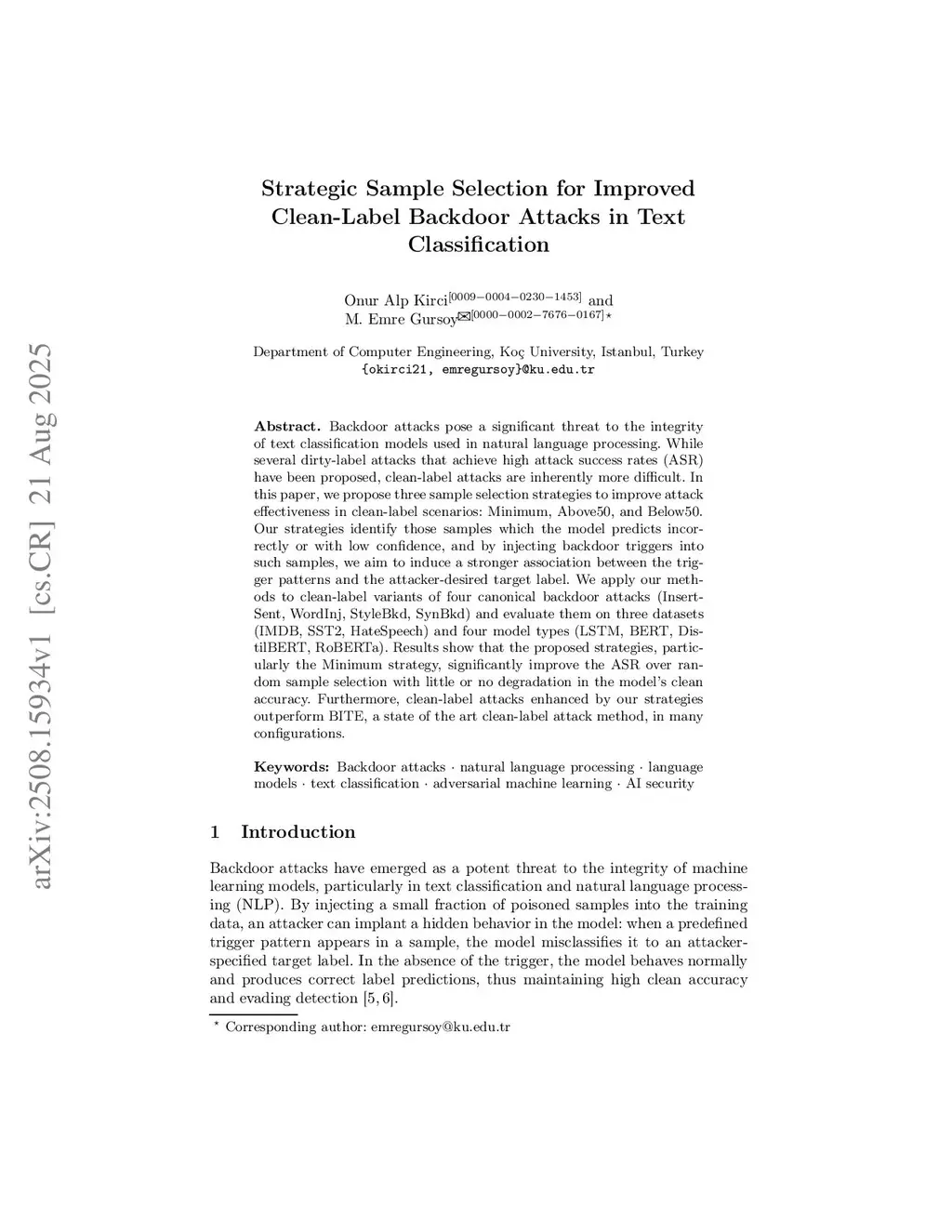 Strategic Sample Selection for Improved Clean-Label Backdoor Attacks in Text Classification