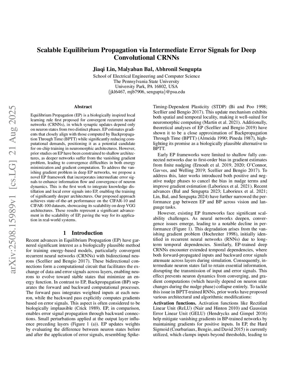 Scalable Equilibrium Propagation via Intermediate Error Signals for Deep Convolutional CRNNs