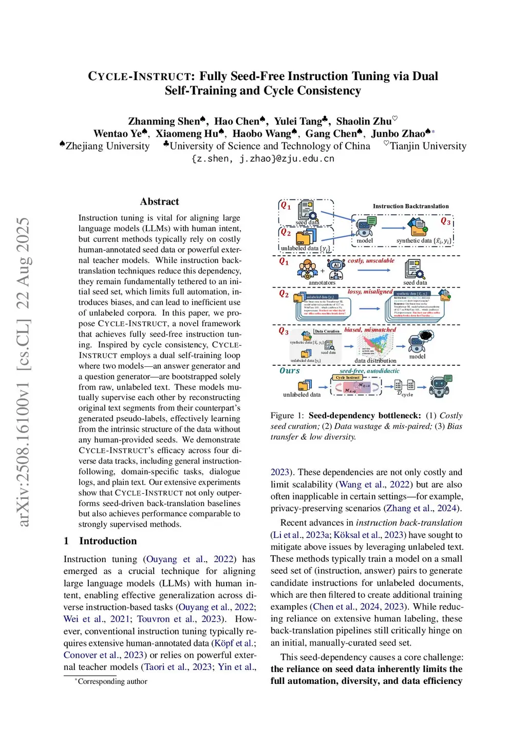 CYCLE-INSTRUCT: Fully Seed-Free Instruction Tuning via Dual Self-Training and Cycle Consistency