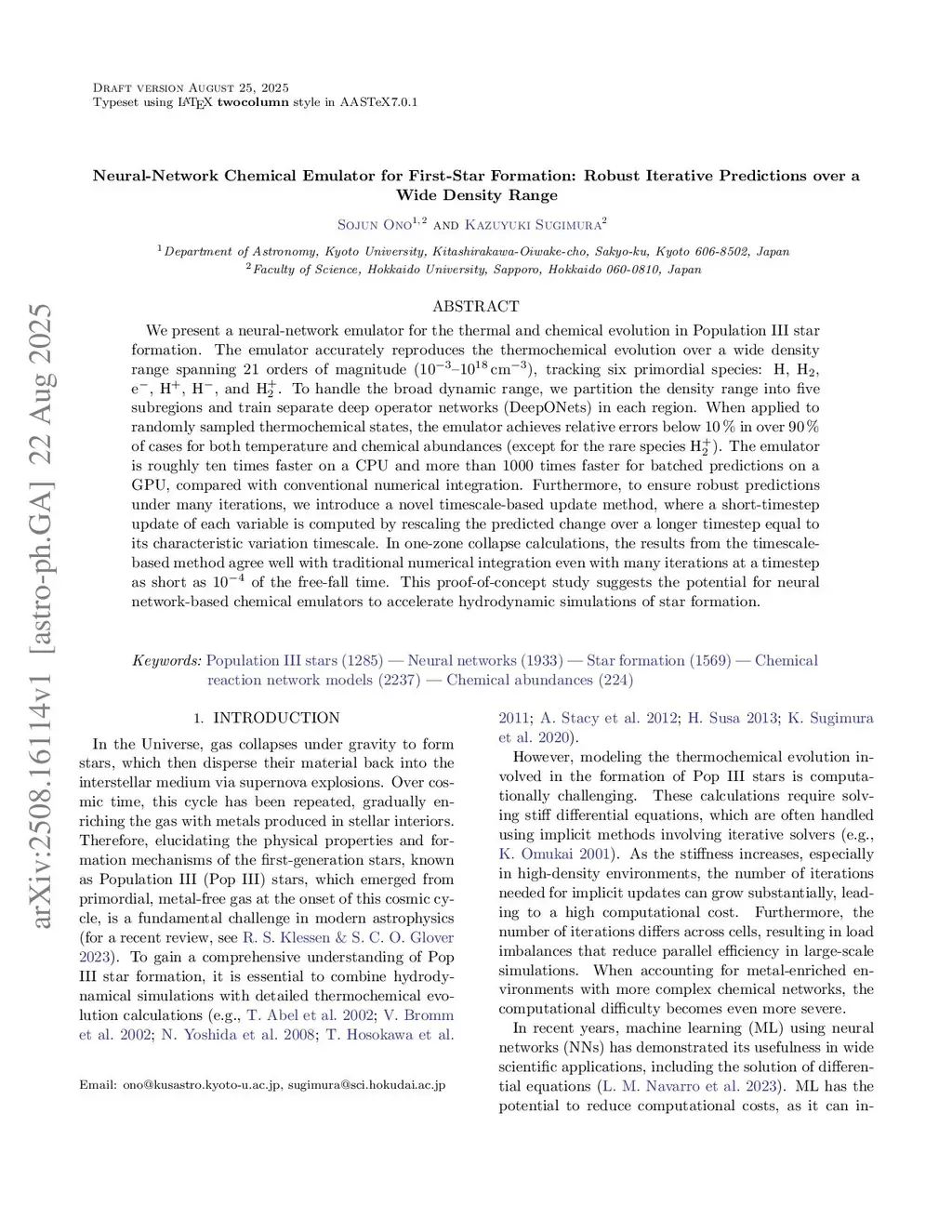 We present a neural-network emulator for the thermal and chemical evolution in Population III star formation. The emulator accurately reproduces the thermochemical evolution over a wide density range spanning 21 orders of magnitude (10-10 cm), tracking six primordial species: H, H, e, H, H, and H. To handle the broad dynamic range, we partition the density range into five subregions and train separate deep operator networks (DeepONets) in each region. When applied to randomly sampled thermochemical states, the emulator achieves relative errors below 10% in over 90% of cases for both temperature and chemical abundances (except for the rare species H). The emulator is roughly ten times faster on a CPU and more than 1000 times faster for batched predictions on a GPU, compared with conventional numerical integration. Furthermore, to ensure robust predictions under many iterations, we introduce a novel timescale-based update method, where a short-timestep update of each variable is computed by rescaling the predicted change over a longer timestep equal to its characteristic variation timescale. In one-zone collapse calculations, the results from the timescale-based method agree well with traditional numerical integration even with many iterations at a timestep as short as 10 of the free-fall time. This proof-of-concept study suggests the potential for neural network-based chemical emulators to accelerate hydrodynamic simulations of star formation.