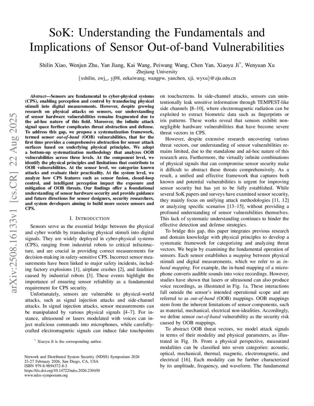 SoK: Understanding the Fundamentals and Implications of Sensor Out-of-band Vulnerabilities