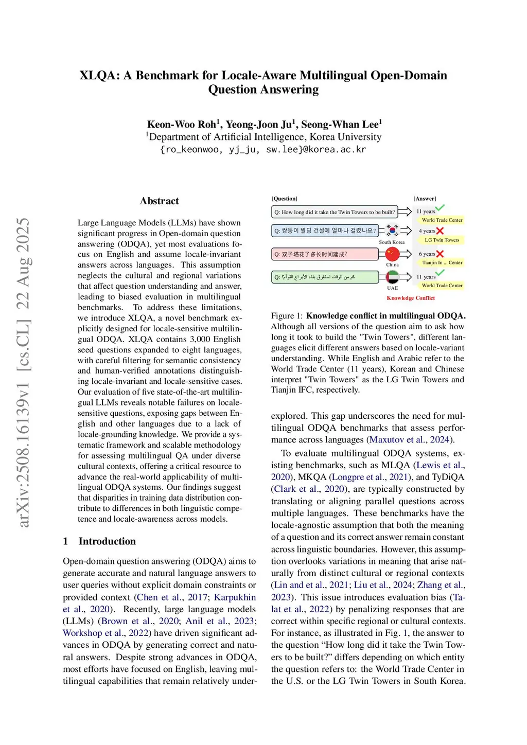 XLQA: A Benchmark for Locale-Aware Multilingual Open-Domain Question Answering