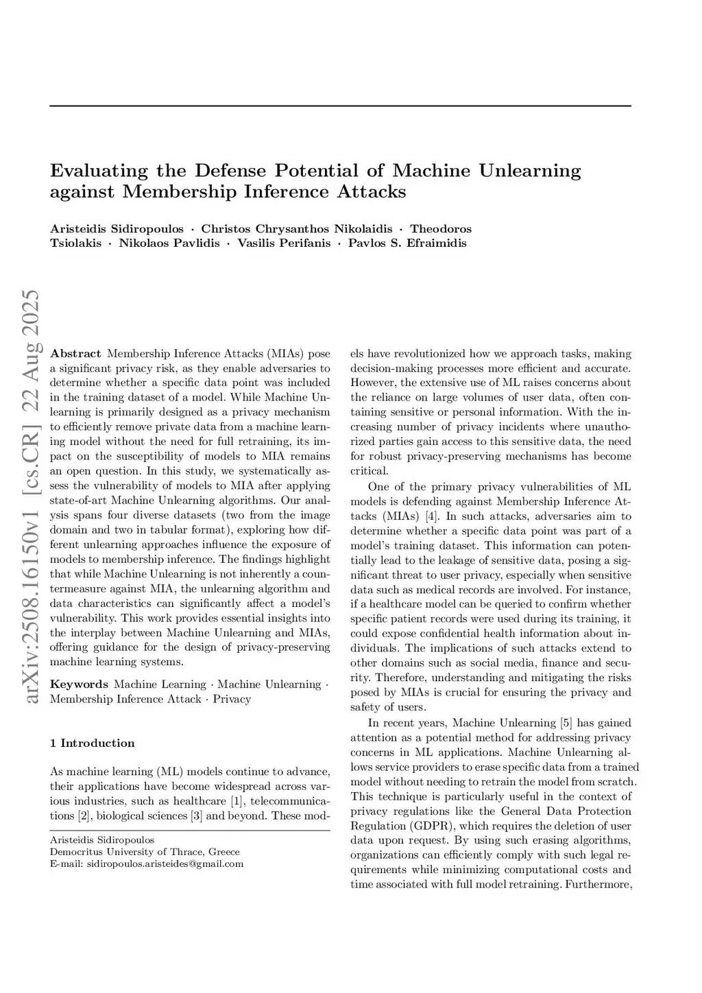 Evaluating the Defense Potential of Machine Unlearning against Membership Inference Attacks