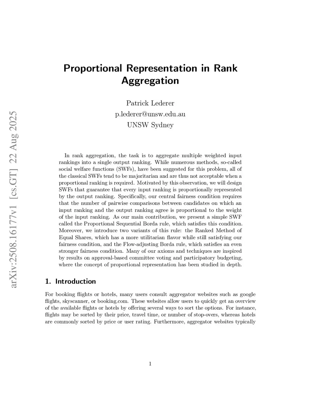 In rank aggregation, the task is to aggregate multiple weighted input rankings into a single output ranking. While numerous methods, so-called social welfare functions (SWFs), have been suggested for this problem, all of the classical SWFs tend to be majoritarian and are thus not acceptable when a proportional ranking is required. Motivated by this observation, we will design SWFs that guarantee that every input ranking is proportionally represented by the output ranking. Specifically, our central fairness condition requires that the number of pairwise comparisons between candidates on which an input ranking and the output ranking agree is proportional to the weight of the input ranking. As our main contribution, we present a simple SWF called the Proportional Sequential Borda rule, which satisfies this condition. Moreover, we introduce two variants of this rule: the Ranked Method of Equal Shares, which has a more utilitarian flavor while still satisfying our fairness condition, and the Flow-adjusting Borda rule, which satisfies an even stronger fairness condition. Many of our axioms and techniques are inspired by results on approval-based committee voting and participatory budgeting, where the concept of proportional representation has been studied in depth.