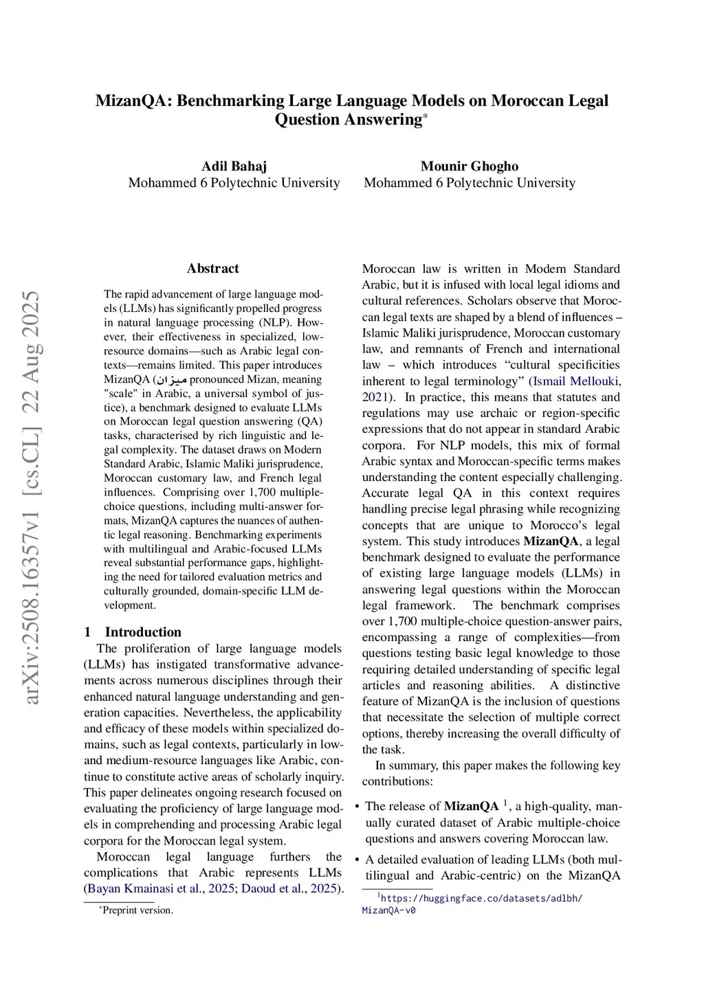 The rapid advancement of large language models (LLMs) has significantly propelled progress in natural language processing (NLP). However, their effectiveness in specialized, low-resource domains-such as Arabic legal contexts-remains limited. This paper introduces MizanQA (pronounced Mizan, meaning "scale" in Arabic, a universal symbol of justice), a benchmark designed to evaluate LLMs on Moroccan legal question answering (QA) tasks, characterised by rich linguistic and legal complexity. The dataset draws on Modern Standard Arabic, Islamic Maliki jurisprudence, Moroccan customary law, and French legal influences. Comprising over 1,700 multiple-choice questions, including multi-answer formats, MizanQA captures the nuances of authentic legal reasoning. Benchmarking experiments with multilingual and Arabic-focused LLMs reveal substantial performance gaps, highlighting the need for tailored evaluation metrics and culturally grounded, domain-specific LLM development.