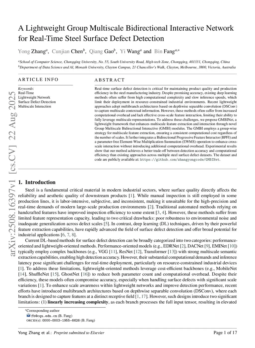 A Lightweight Group Multiscale Bidirectional Interactive Network for Real-Time Steel Surface Defect Detection