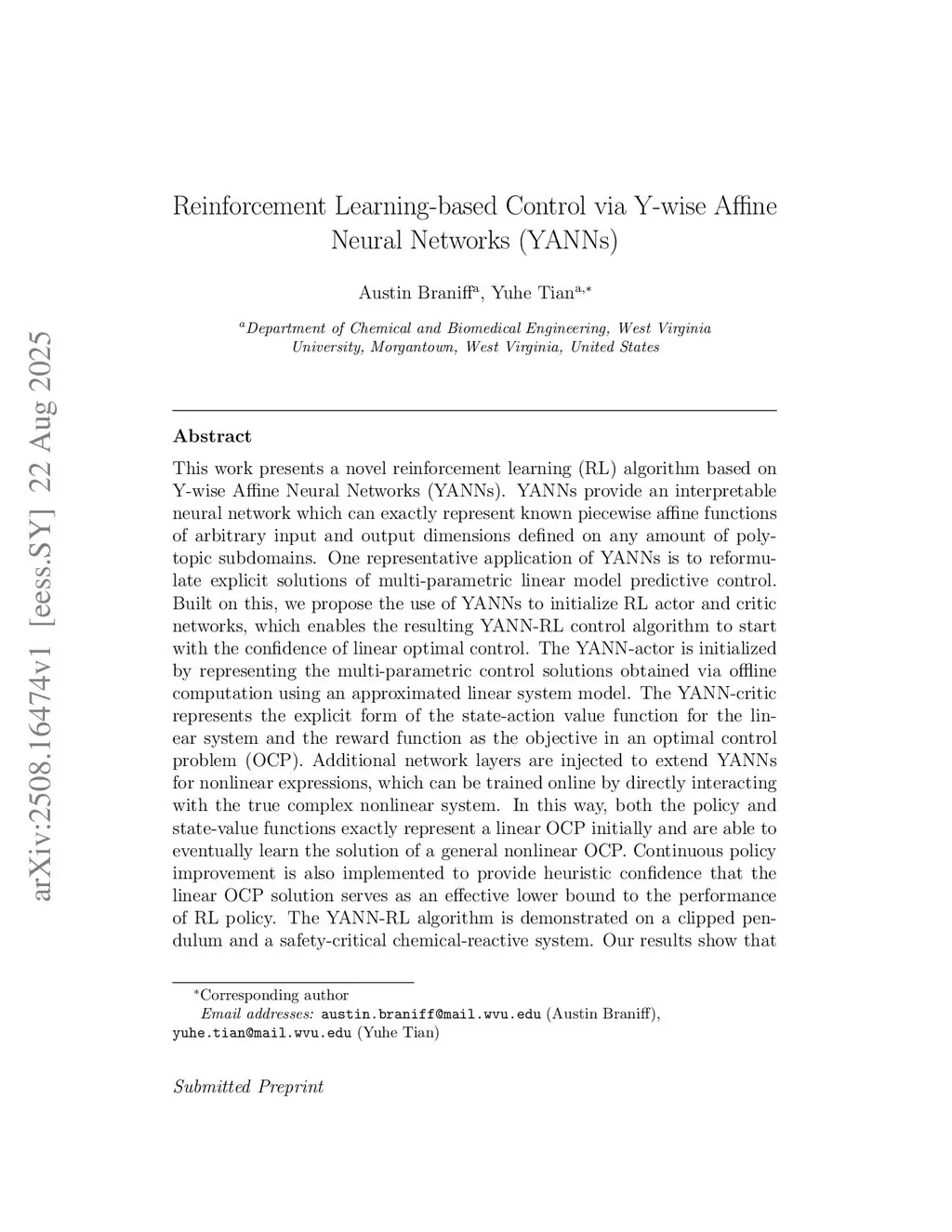 Reinforcement Learning-based Control via Y-wise Affine Neural Networks (YANNs)