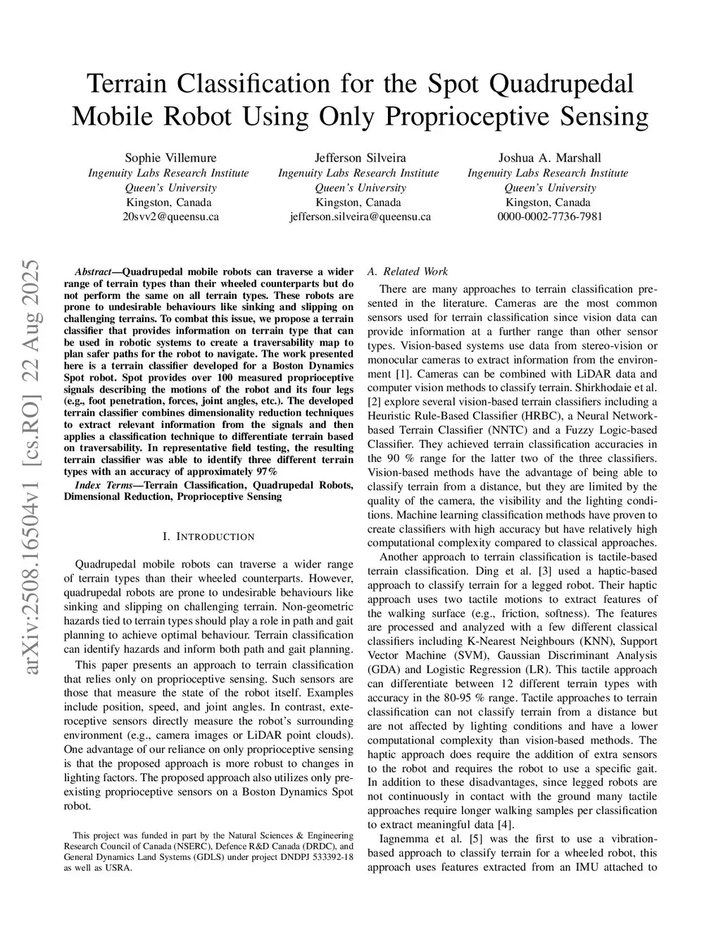 Terrain Classification for the Spot Quadrupedal Mobile Robot Using Only Proprioceptive Sensing