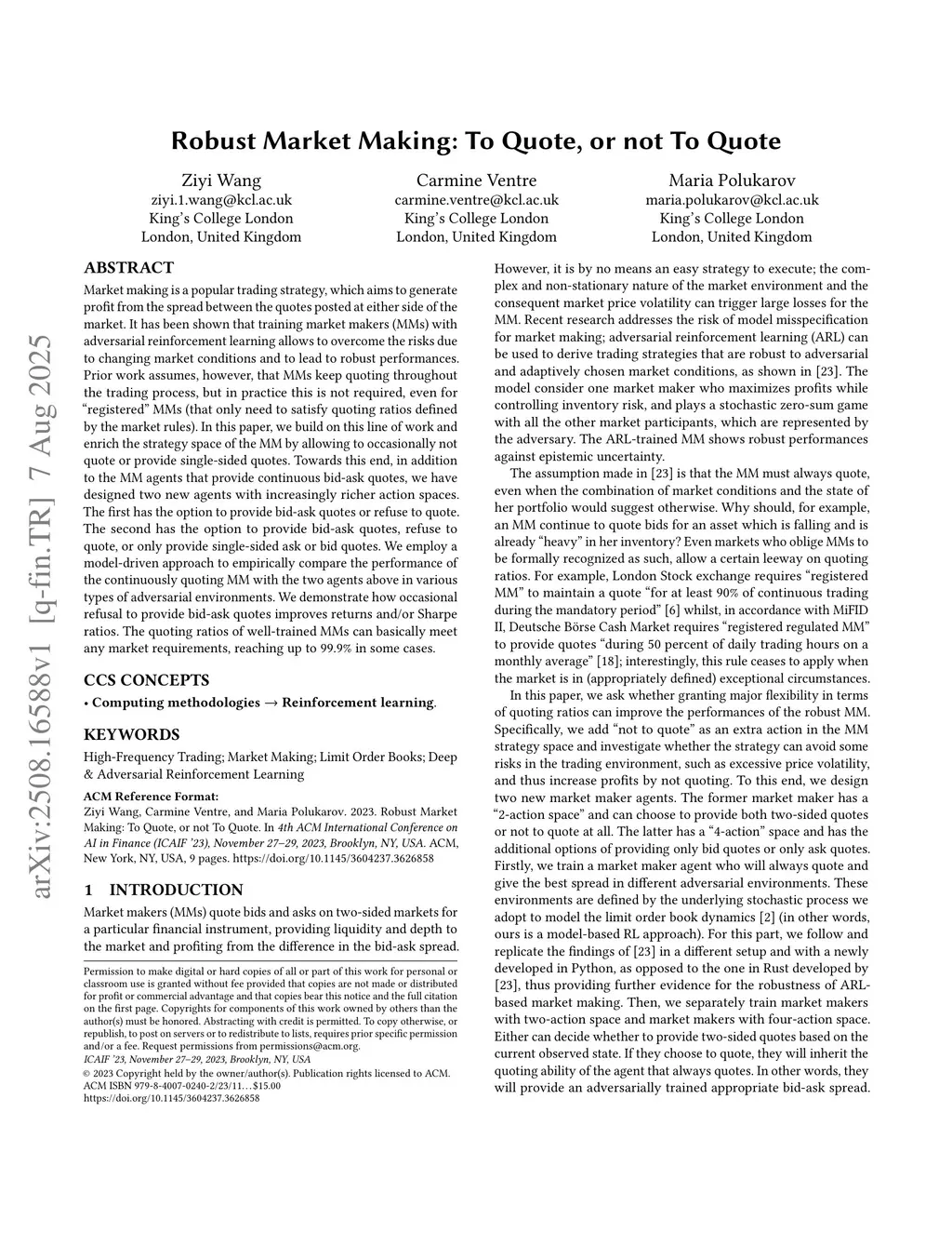 Market making is a popular trading strategy, which aims to generate profit from the spread between the quotes posted at either side of the market. It has been shown that training market makers (MMs) with adversarial reinforcement learning allows to overcome the risks due to changing market conditions and to lead to robust performances. Prior work assumes, however, that MMs keep quoting throughout the trading process, but in practice this is not required, even for ``registered'' MMs (that only need to satisfy quoting ratios defined by the market rules). In this paper, we build on this line of work and enrich the strategy space of the MM by allowing to occasionally not quote or provide single-sided quotes. Towards this end, in addition to the MM agents that provide continuous bid-ask quotes, we have designed two new agents with increasingly richer action spaces. The first has the option to provide bid-ask quotes or refuse to quote. The second has the option to provide bid-ask quotes, refuse to quote, or only provide single-sided ask or bid quotes. We employ a model-driven approach to empirically compare the performance of the continuously quoting MM with the two agents above in various types of adversarial environments. We demonstrate how occasional refusal to provide bid-ask quotes improves returns and/or Sharpe ratios. The quoting ratios of well-trained MMs can basically meet any market requirements, reaching up to 99.9 in some cases.