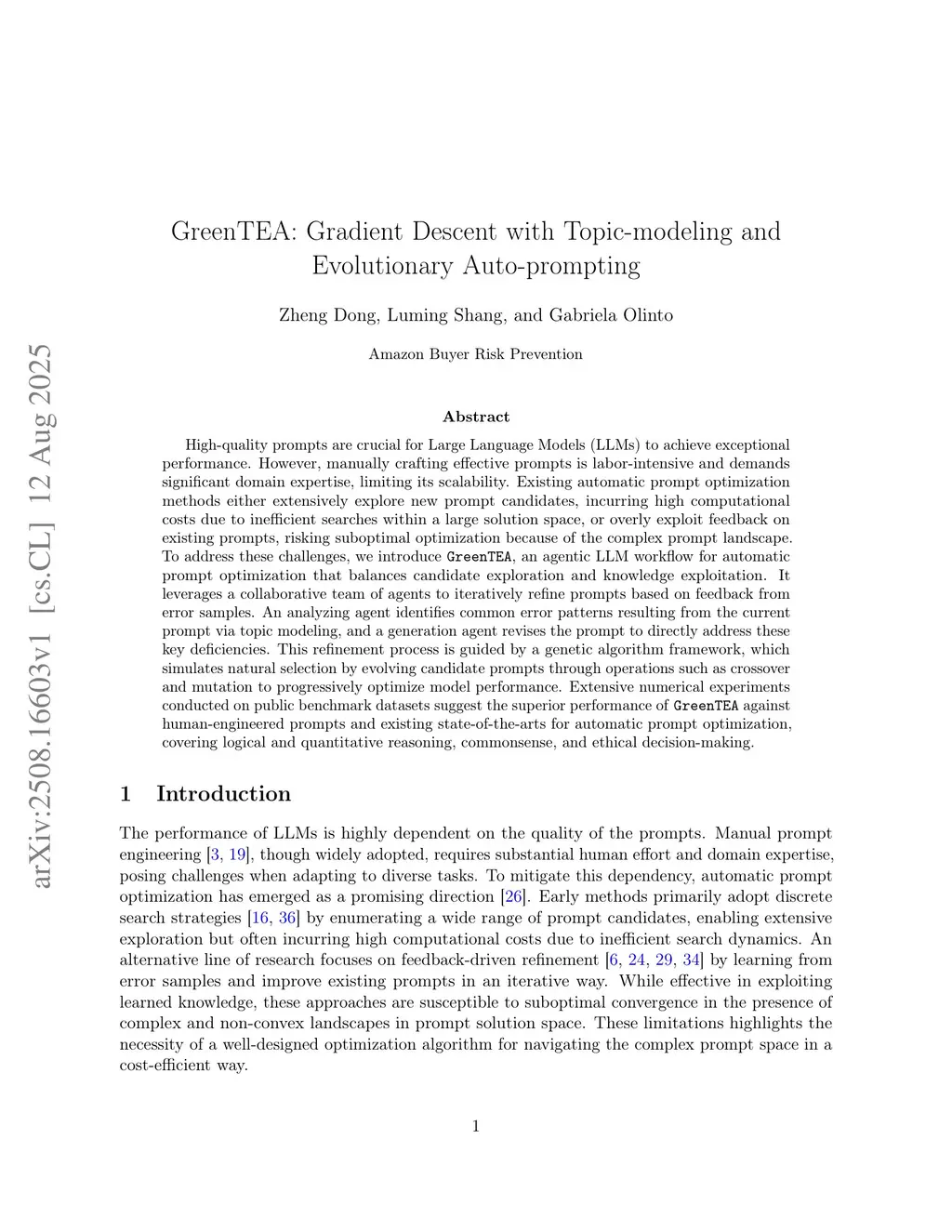 GreenTEA: Gradient Descent with Topic-modeling and Evolutionary Auto-prompting