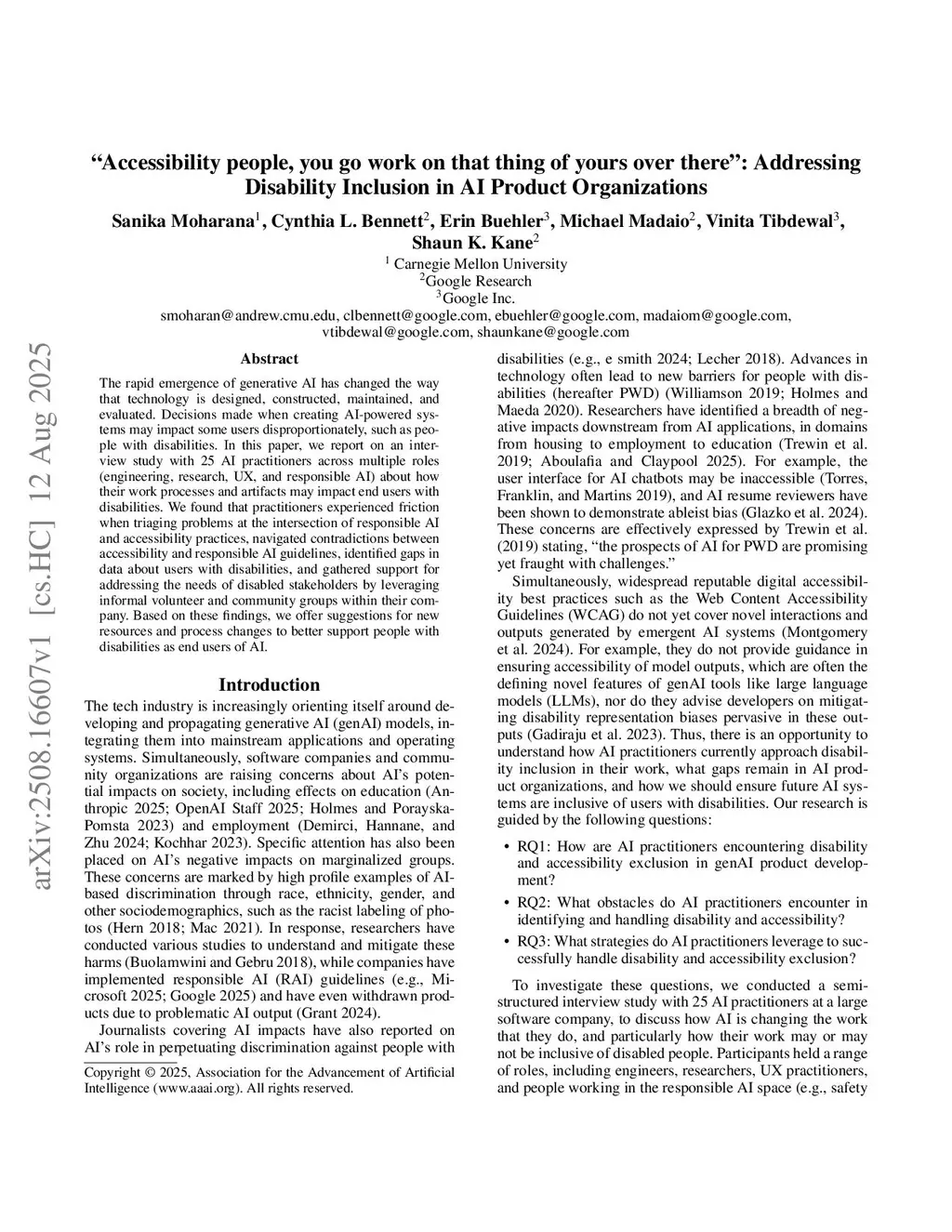 The rapid emergence of generative AI has changed the way that technology is designed, constructed, maintained, and evaluated. Decisions made when creating AI-powered systems may impact some users disproportionately, such as people with disabilities. In this paper, we report on an interview study with 25 AI practitioners across multiple roles (engineering, research, UX, and responsible AI) about how their work processes and artifacts may impact end users with disabilities. We found that practitioners experienced friction when triaging problems at the intersection of responsible AI and accessibility practices, navigated contradictions between accessibility and responsible AI guidelines, identified gaps in data about users with disabilities, and gathered support for addressing the needs of disabled stakeholders by leveraging informal volunteer and community groups within their company. Based on these findings, we offer suggestions for new resources and process changes to better support people with disabilities as end users of AI.