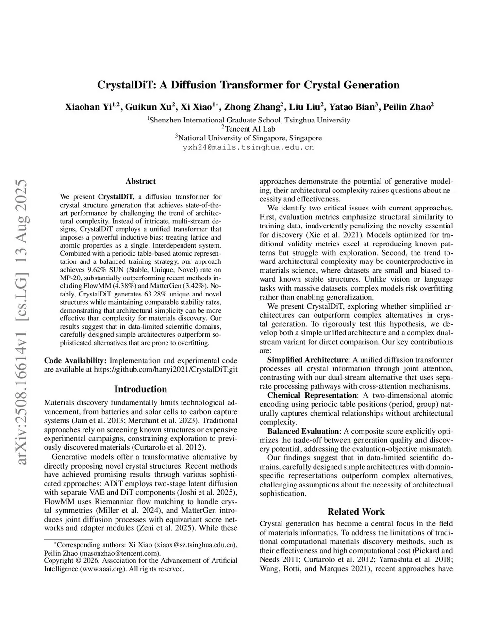 We present CrystalDiT, a diffusion transformer for crystal structure generation that achieves state-of-the-art performance by challenging the trend of architectural complexity. Instead of intricate, multi-stream designs, CrystalDiT employs a unified transformer that imposes a powerful inductive bias: treating lattice and atomic properties as a single, interdependent system. Combined with a periodic table-based atomic representation and a balanced training strategy, our approach achieves 8.78% SUN (Stable, Unique, Novel) rate on MP-20, substantially outperforming recent methods including FlowMM (4.21%) and MatterGen (3.66%). Notably, CrystalDiT generates 63.28% unique and novel structures while maintaining comparable stability rates, demonstrating that architectural simplicity can be more effective than complexity for materials discovery. Our results suggest that in data-limited scientific domains, carefully designed simple architectures outperform sophisticated alternatives that are prone to overfitting.