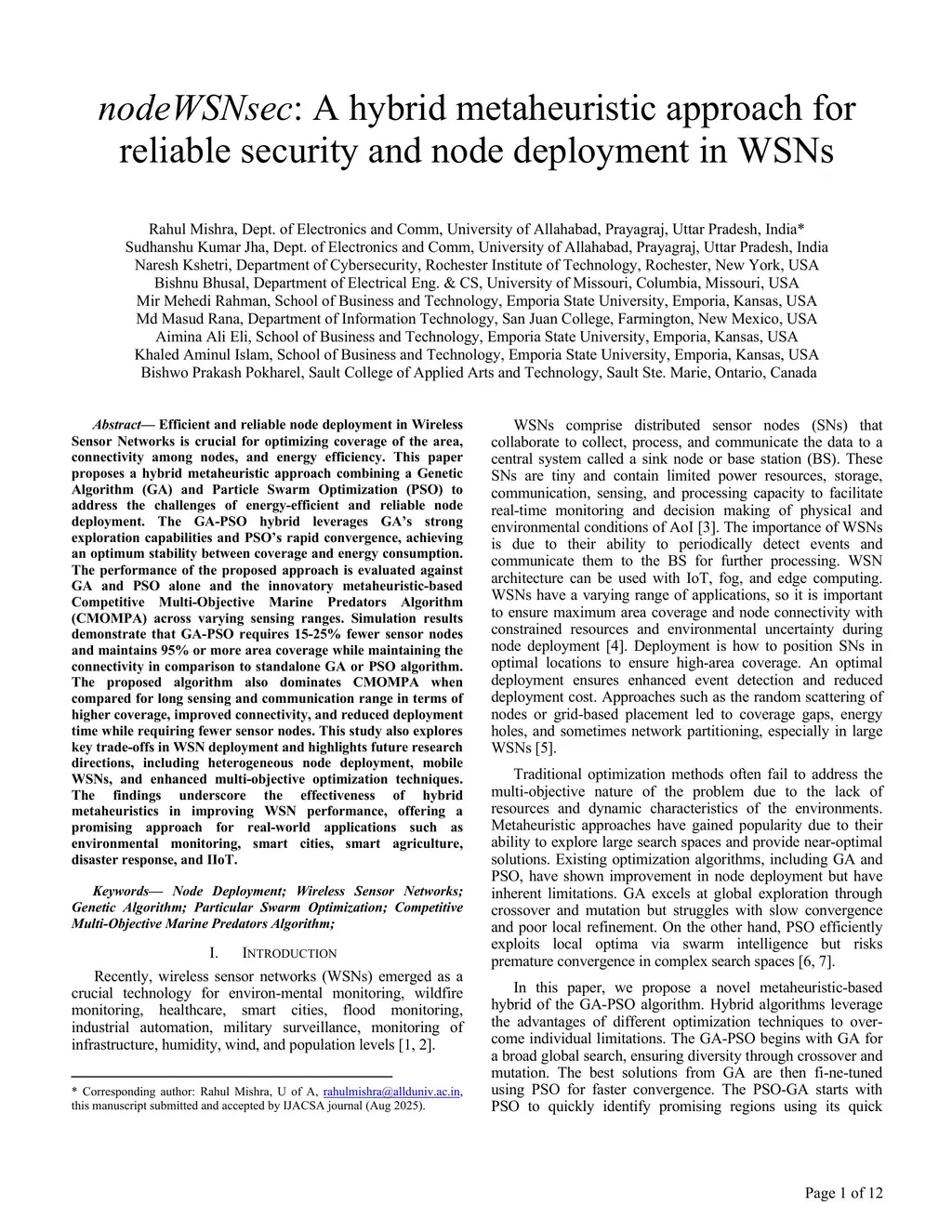 nodeWSNsec: A hybrid metaheuristic approach for reliable security and node deployment in WSNs