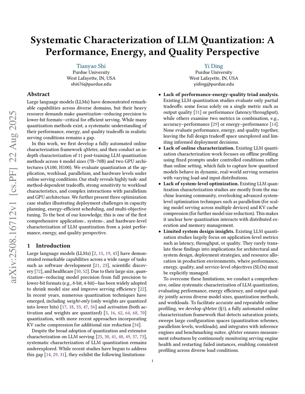 Systematic Characterization of LLM Quantization: A Performance, Energy, and Quality Perspective