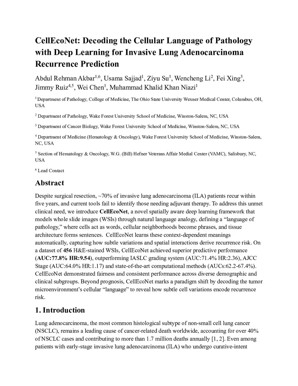 Recurrence remains a major clinical challenge in surgically resected invasive lung adenocarcinoma, where existing grading and staging systems fail to capture the cellular complexity that underlies tumor aggressiveness. We present PathRosetta, a novel AI model that conceptualizes histopathology as a language, where cells serve as words, spatial neighborhoods form syntactic structures, and tissue architecture composes sentences. By learning this language of histopathology, PathRosetta predicts five-year recurrence directly from hematoxylin-and-eosin (H&E) slides, treating them as documents representing the state of the disease. In a multi-cohort dataset of 289 patients (600 slides), PathRosetta achieved an area under the curve (AUC) of 0.78 +- 0.04 on the internal cohort, significantly outperforming IASLC grading (AUC:0.71), AJCC staging (AUC:0.64), and other state-of-the-art AI models (AUC:0.62-0.67). It yielded a hazard ratio of 9.54 and a concordance index of 0.70, generalized robustly to external TCGA (AUC:0.75) and CPTAC (AUC:0.76) cohorts, and performed consistently across demographic and clinical subgroups. Beyond whole-slide prediction, PathRosetta uncovered prognostic subgroups within individual cell types, revealing that even within benign epithelial, stromal, or other cells, distinct morpho-spatial phenotypes correspond to divergent outcomes. Moreover, because the model explicitly understands what it is looking at, including cell types, cellular neighborhoods, and higher-order tissue morphology, it is inherently interpretable and can articulate the rationale behind its predictions. These findings establish that representing histopathology as a language enables interpretable and generalizable prognostication from routine histology.