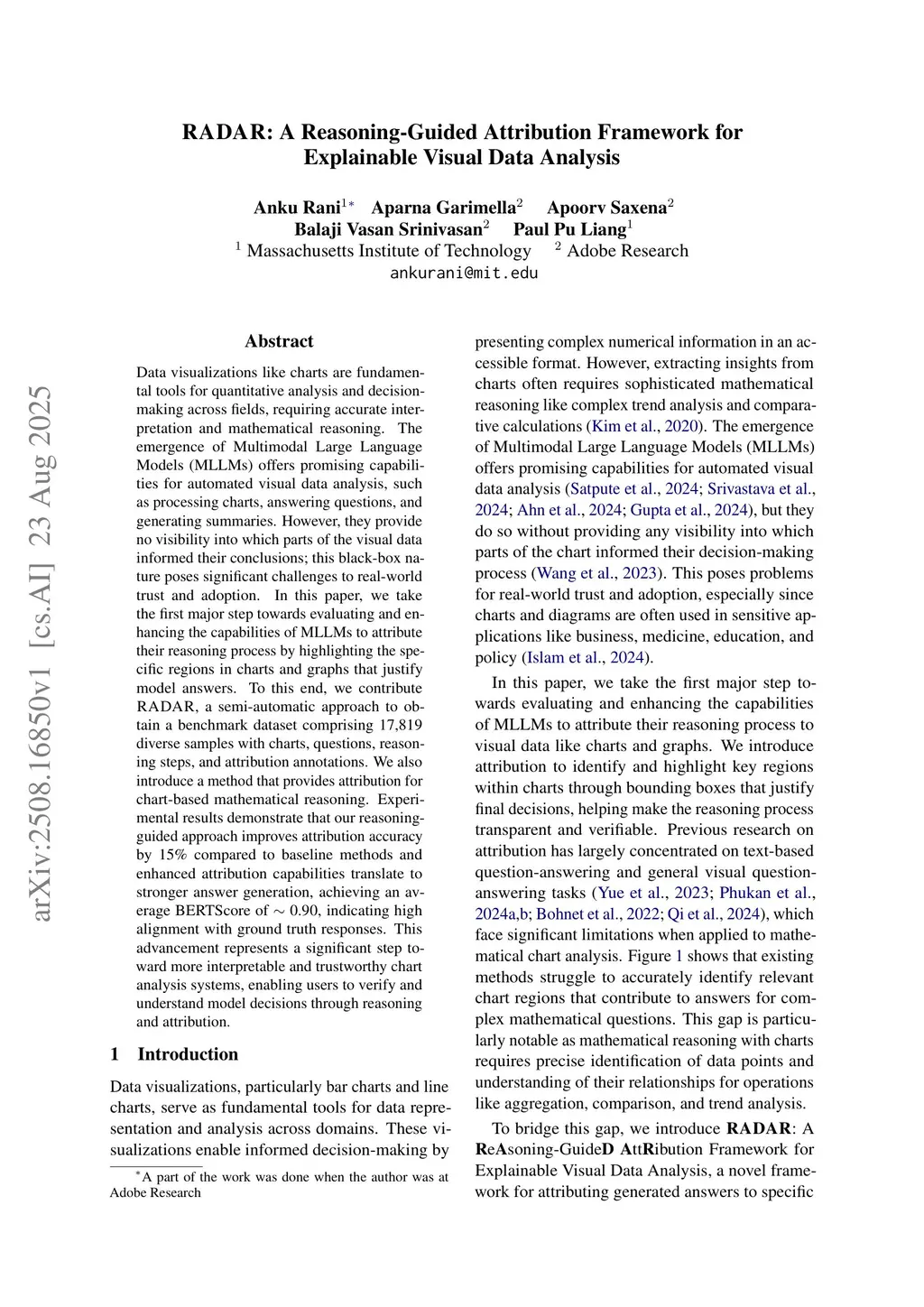 RADAR: A Reasoning-Guided Attribution Framework for Explainable Visual Data Analysis