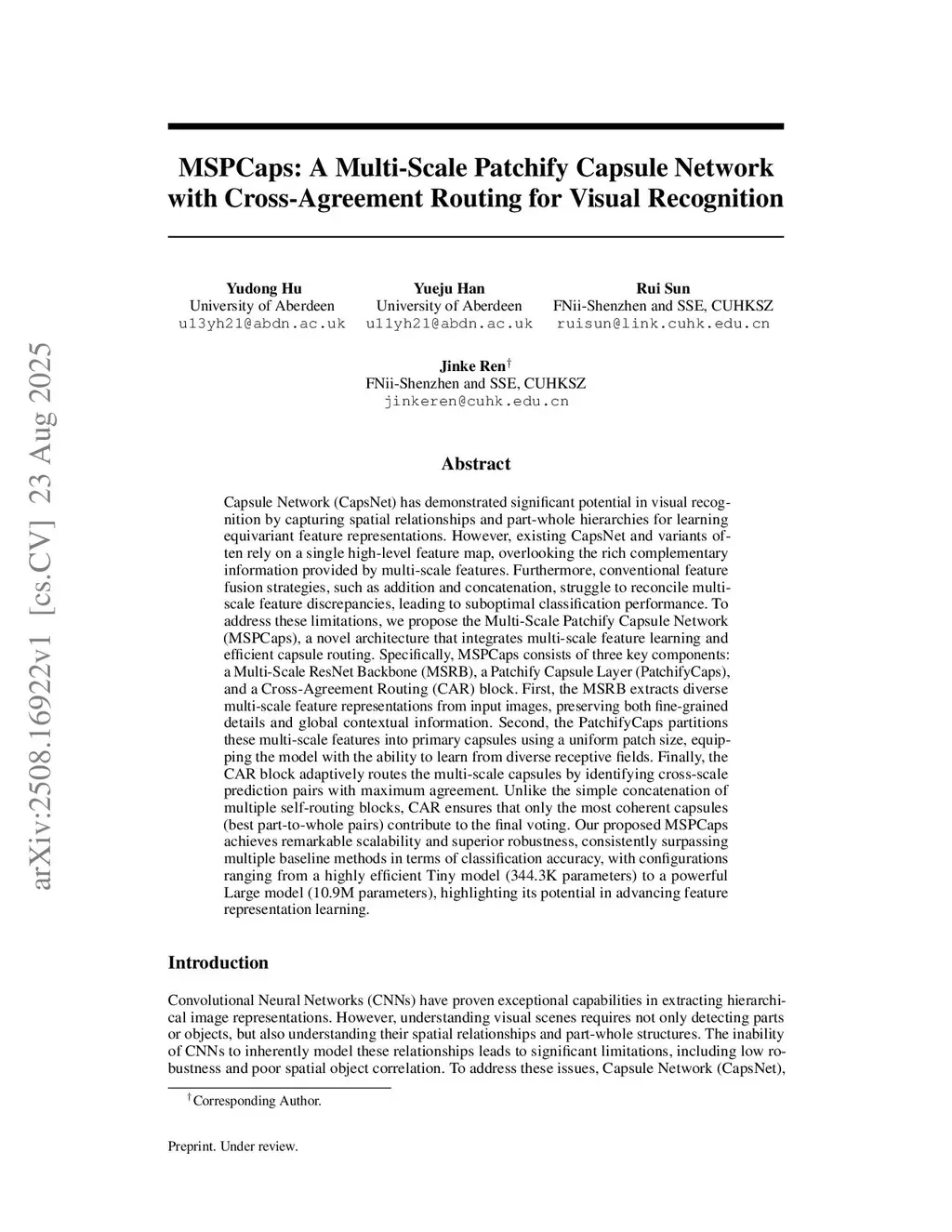 MSPCaps: A Multi-Scale Patchify Capsule Network with Cross-Agreement Routing for Visual Recognition
