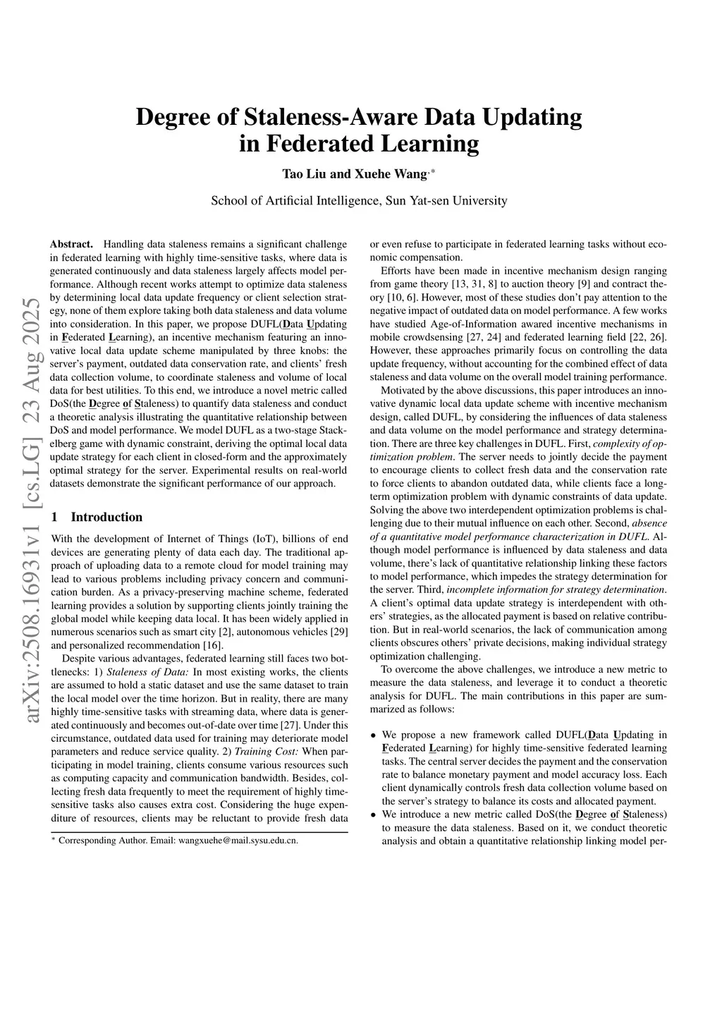 Degree of Staleness-Aware Data Updating in Federated Learning