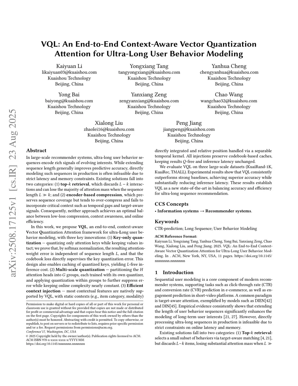 VQL: An End-to-End Context-Aware Vector Quantization Attention for Ultra-Long User Behavior Modeling