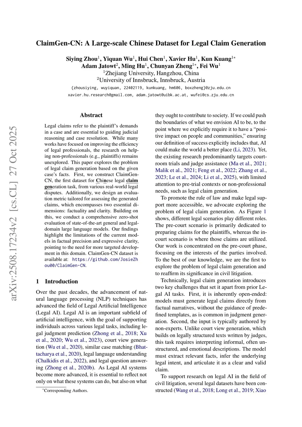 ClaimGen-CN: A Large-scale Chinese Dataset for Legal Claim Generation