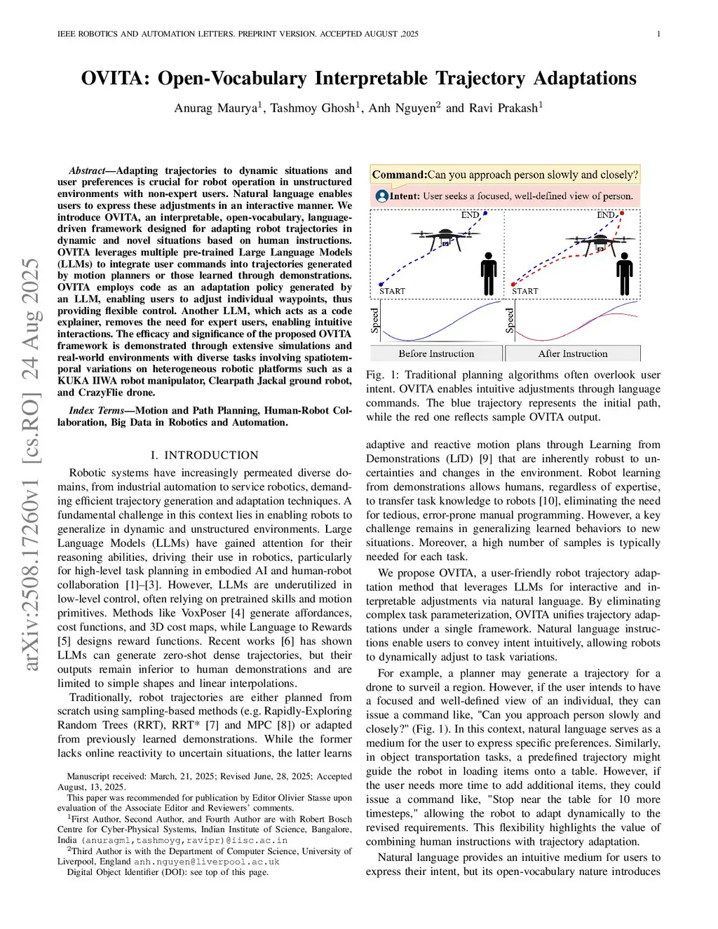OVITA: Open-Vocabulary Interpretable Trajectory Adaptations