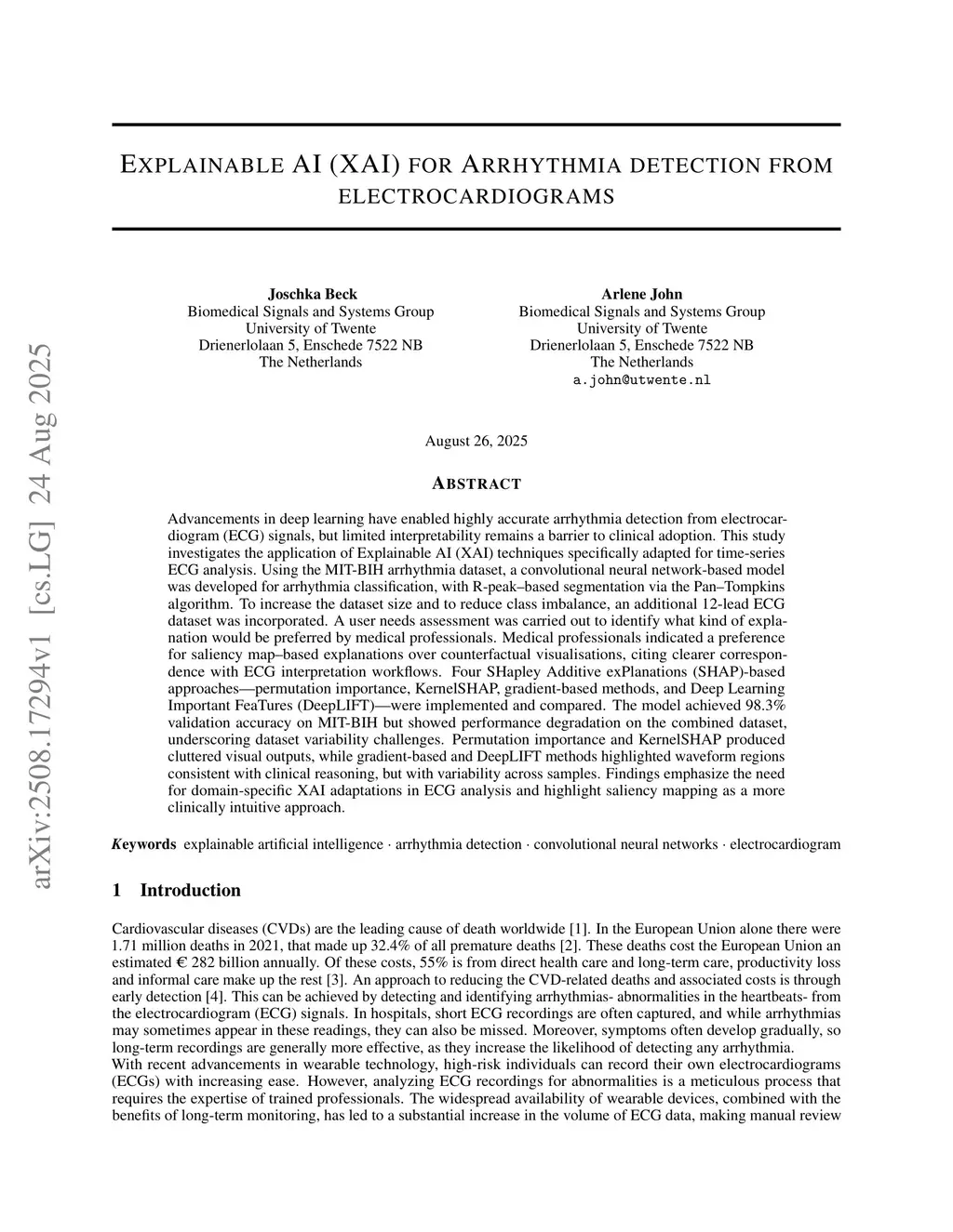 Explainable AI (XAI) for Arrhythmia detection from electrocardiograms