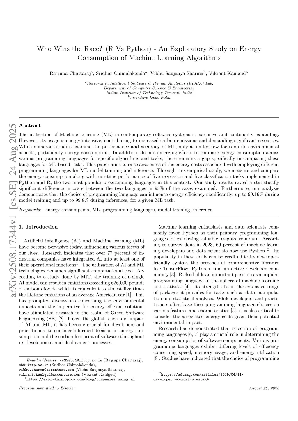 Who Wins the Race? (R Vs Python) - An Exploratory Study on Energy Consumption of Machine Learning Algorithms