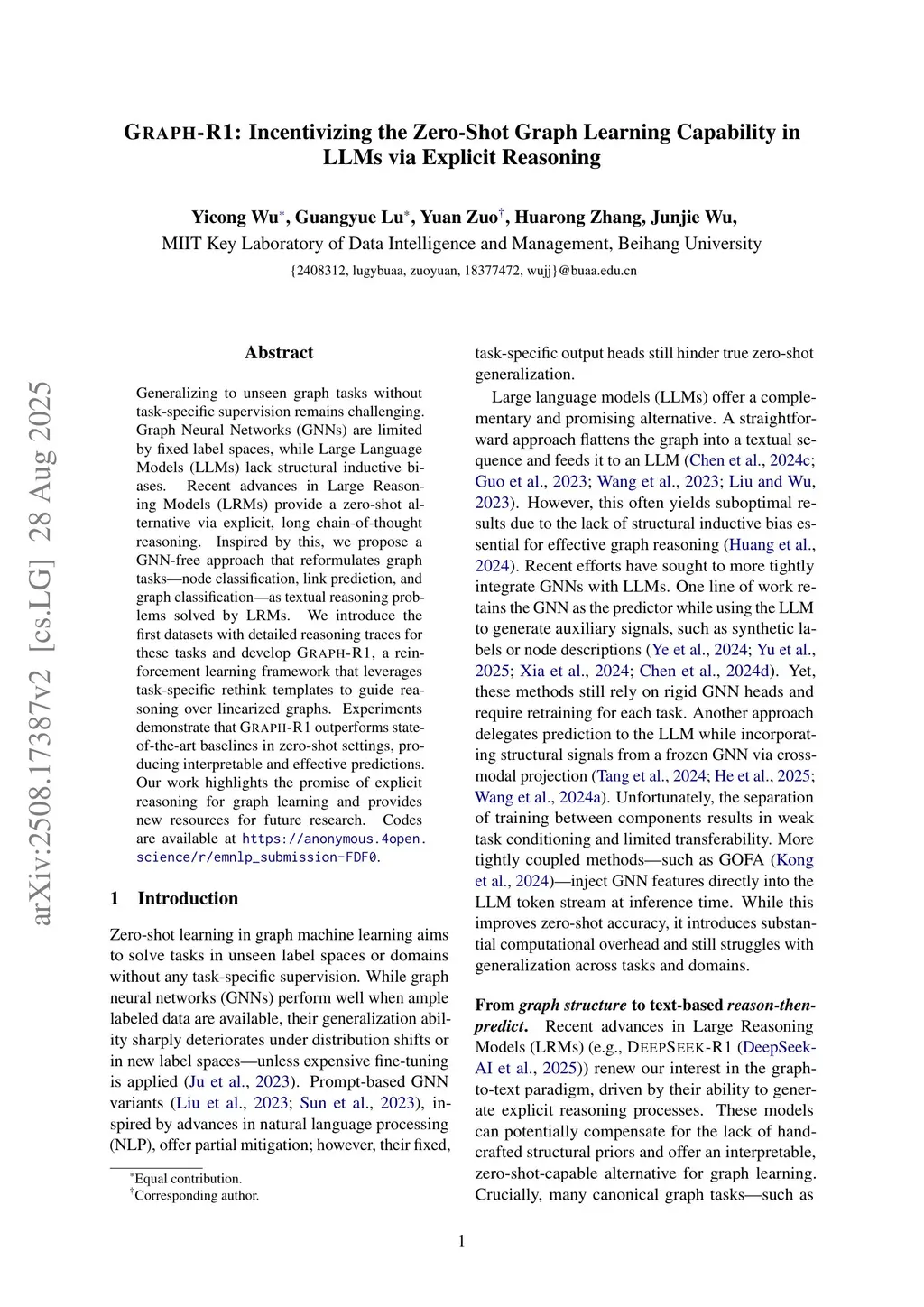 Graph-R1: Incentivizing the Zero-Shot Graph Learning Capability in LLMs via Explicit Reasoning