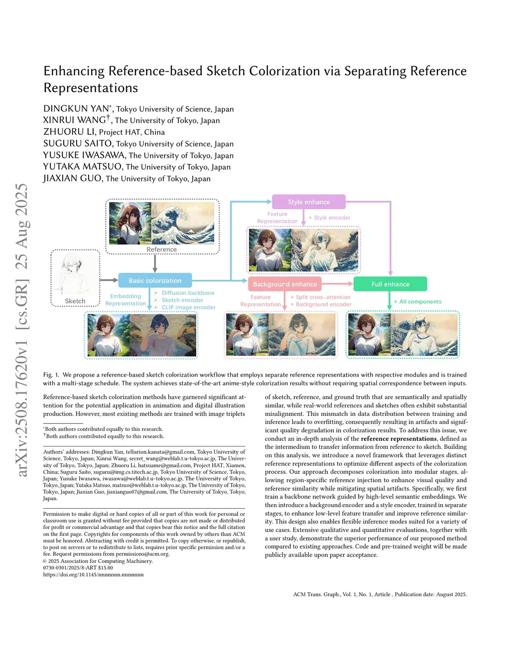 Enhancing Reference-based Sketch Colorization via Separating Reference Representations