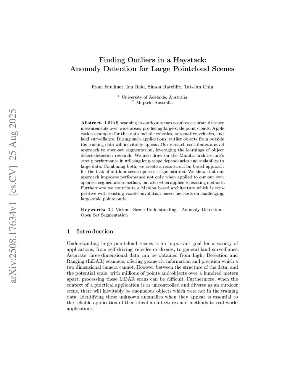Finding Outliers in a Haystack: Anomaly Detection for Large Pointcloud Scenes