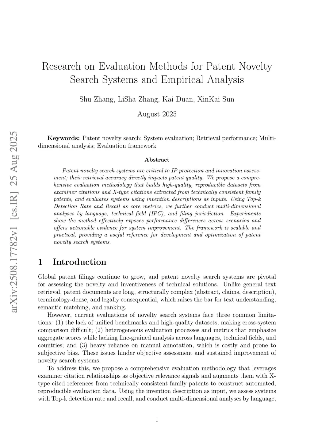 Research on Evaluation Methods for Patent Novelty Search Systems and Empirical Analysis